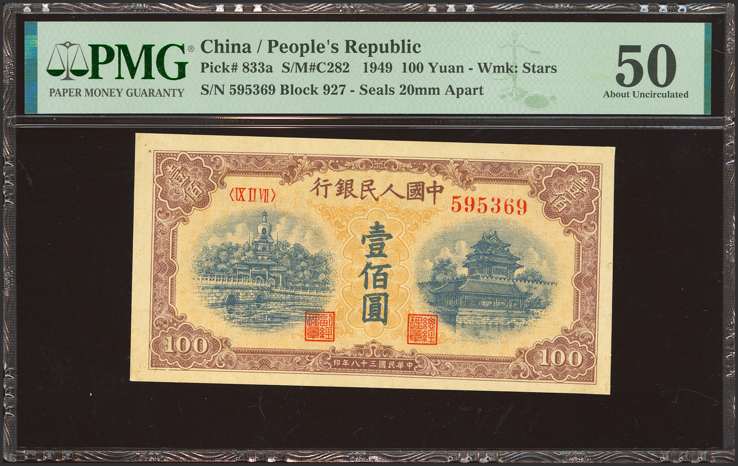 English CHINA. 100 Yuan. 1949. Peoples Bank. (Pick: 833a, SM: C282). PMG50.