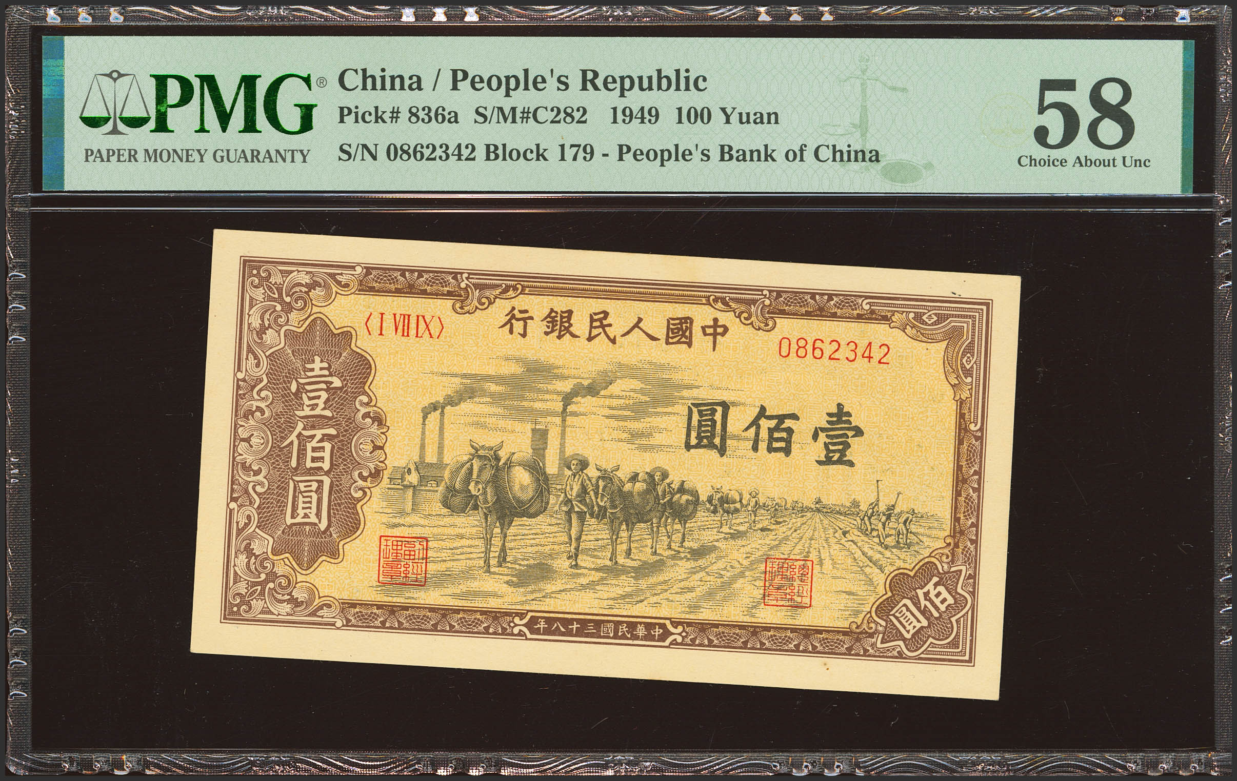CHINA. 100 Yuan. 1949. Peoples Bank. (Pick: 836, SM: C282). PMG58.