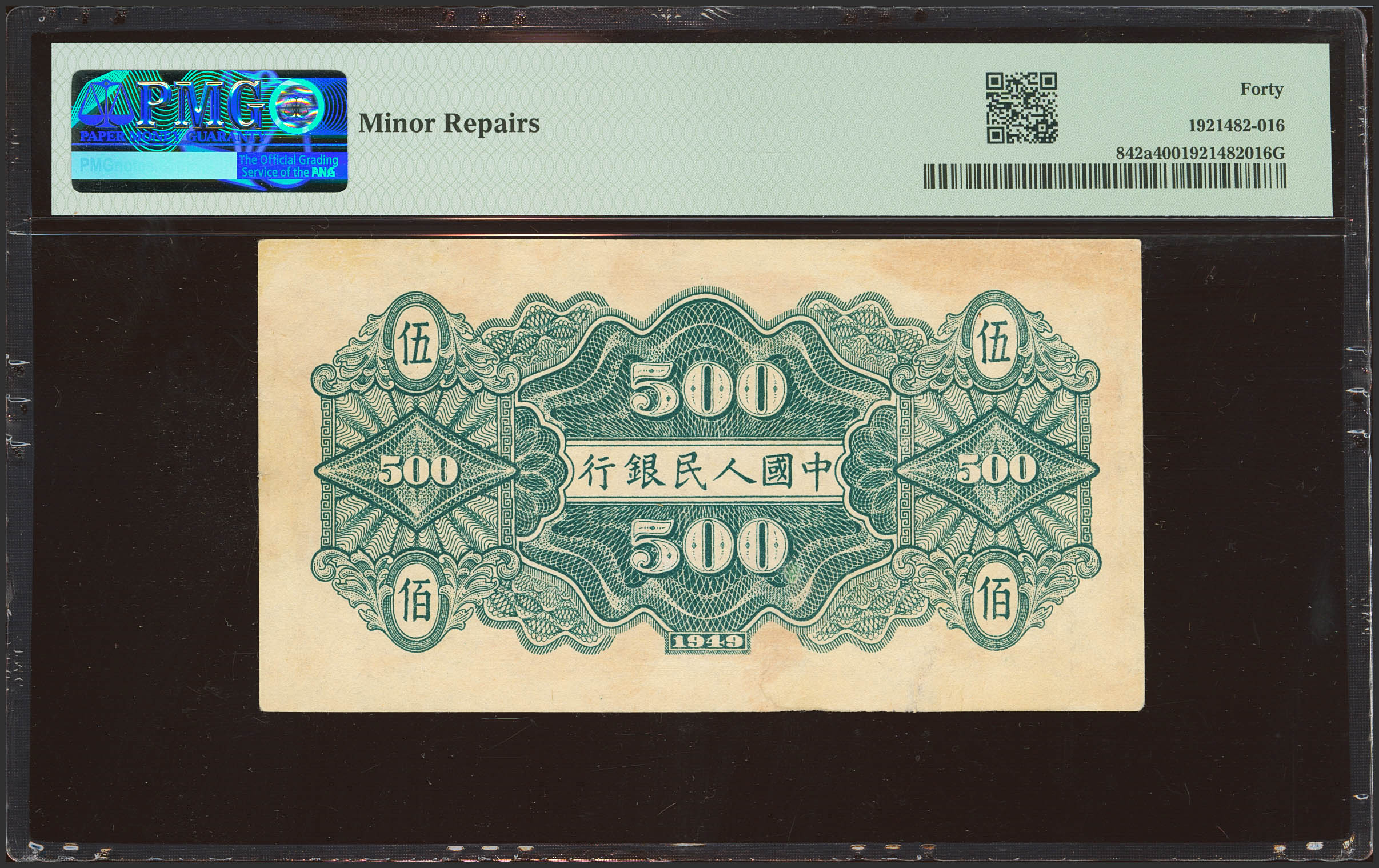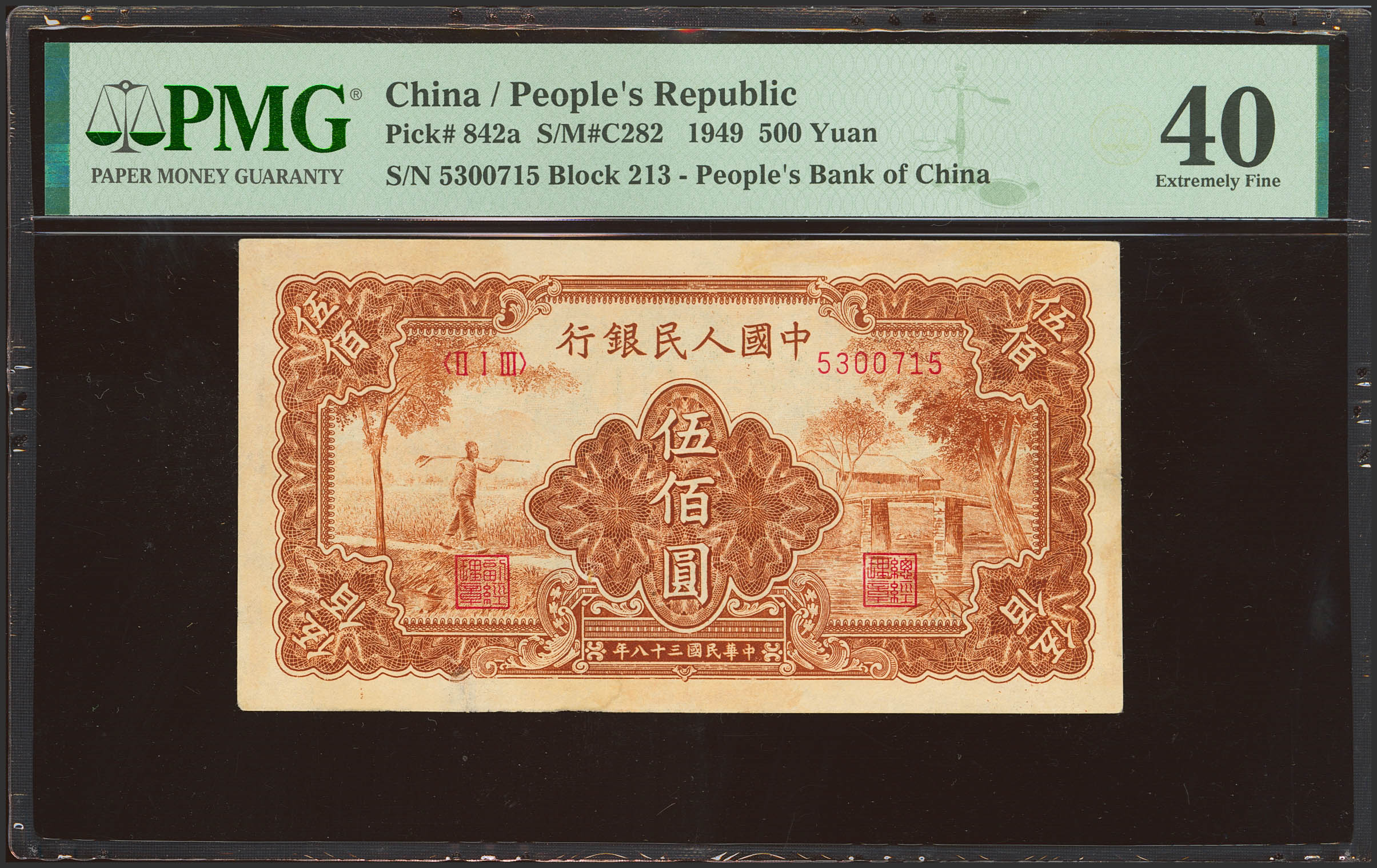 CHINA. 500 Yuan. 1949. Peoples Bank. (Pick: 842a, SM: C282). PMG40 (minor repairs).