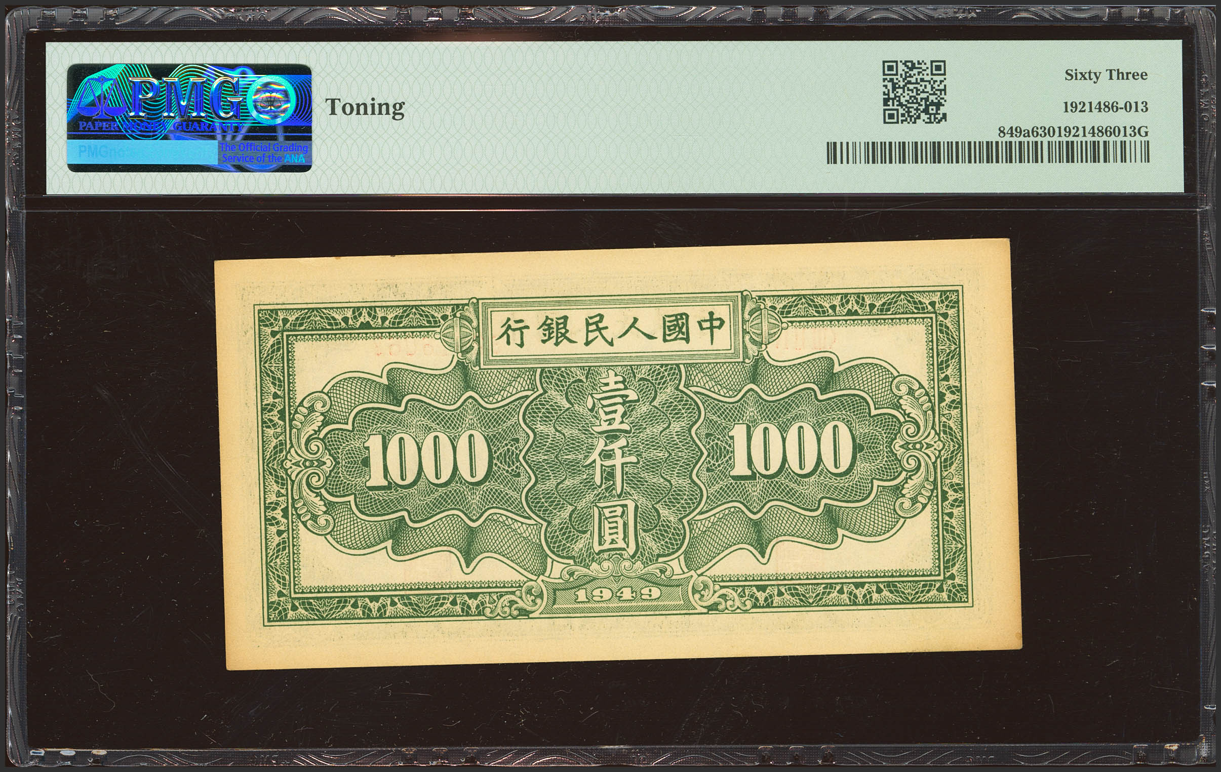 CHINA. 1000 Yuan. 1949. Peoples Bank. (Pick: 849a, SM: C282). PMG63 (toning).