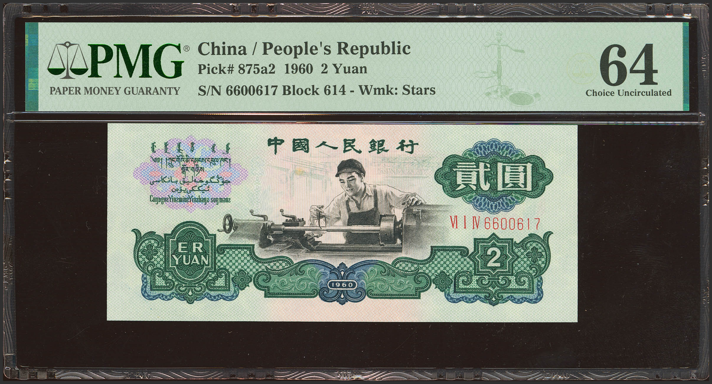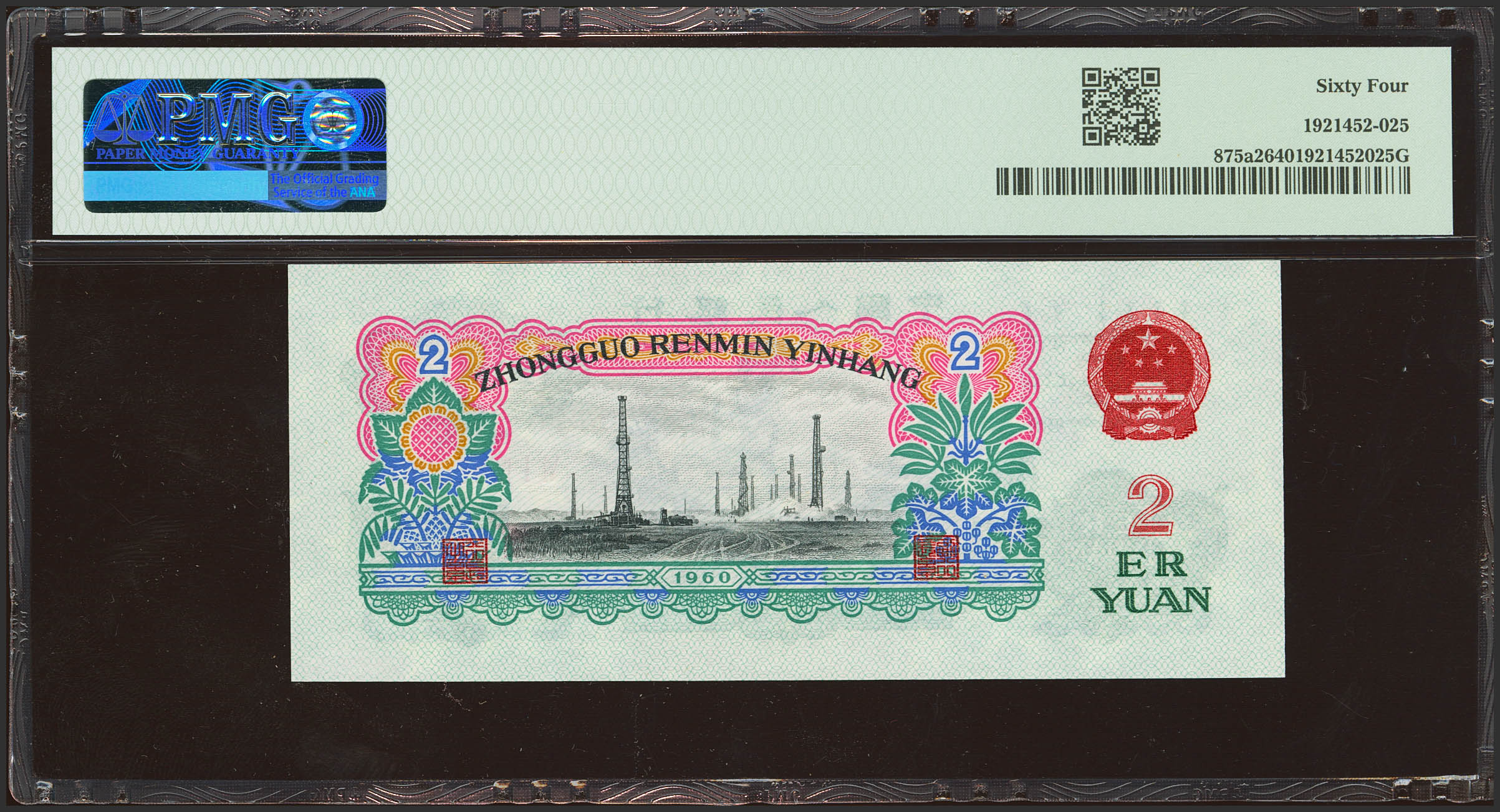 English CHINA. 2 Yuan. 1960. Peoples Bank. (Pick: 875a2). PMG64.