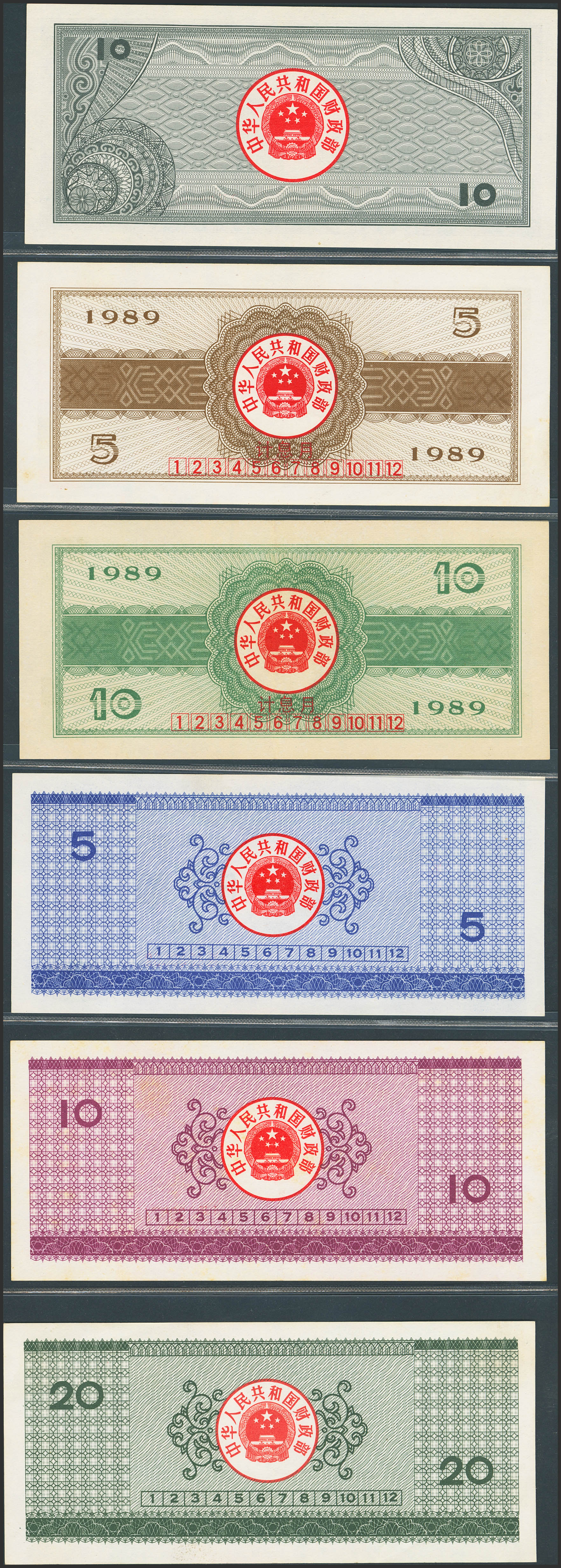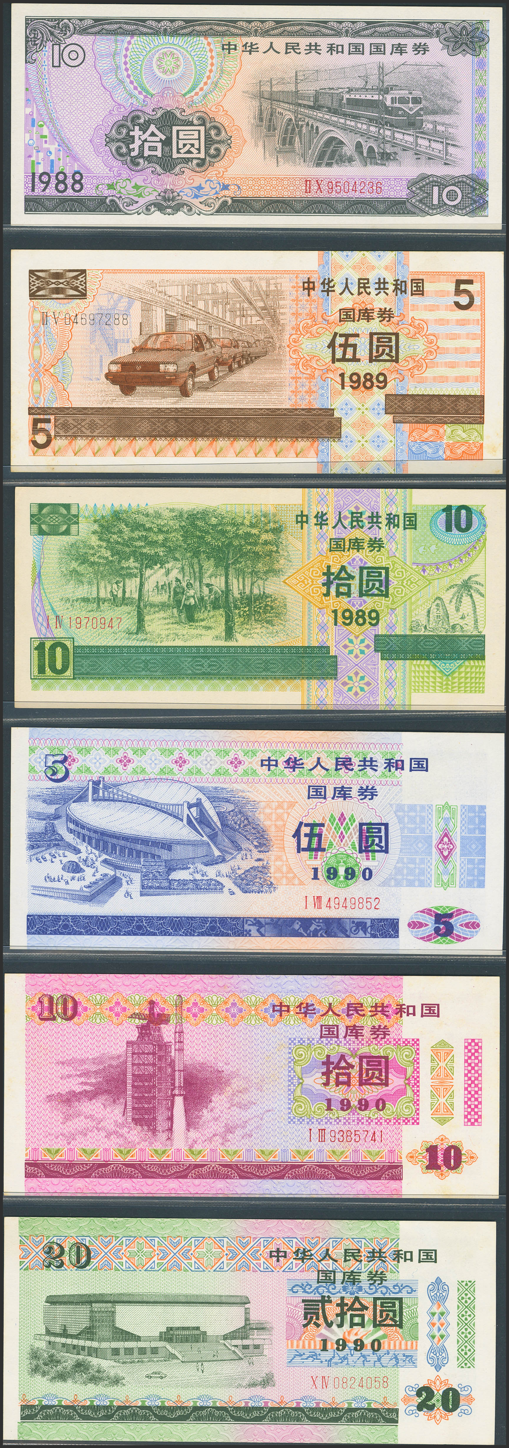 CHINA. Lot of 6 notes of Yuan. (1988ca). Government Bonds. (Pick: Unlisted). About Uncirculated / Uncirculated.