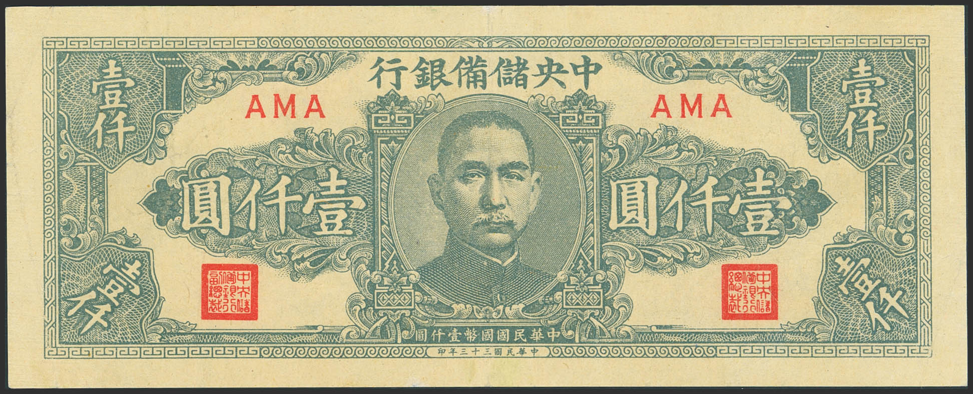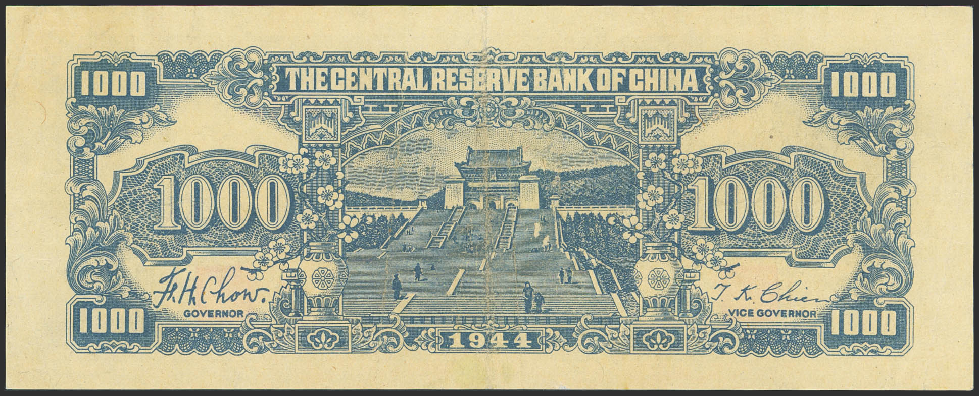 CHINA-PUPPET BANKS. 1000 Yuan. 1944. Central Reserve Bank. (Pick: J34a). More than Very Fine.