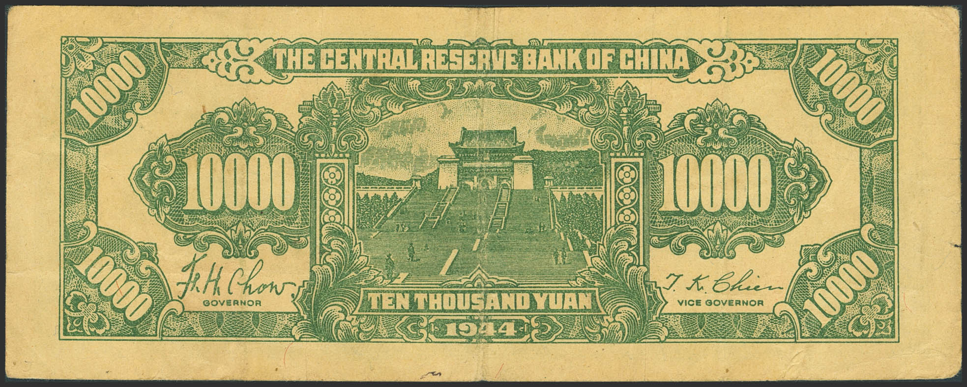 CHINA-PUPPET BANKS. 10000 Yuan. 1944. Central Reserve Bank. (Pick: J39a). Very Fine.