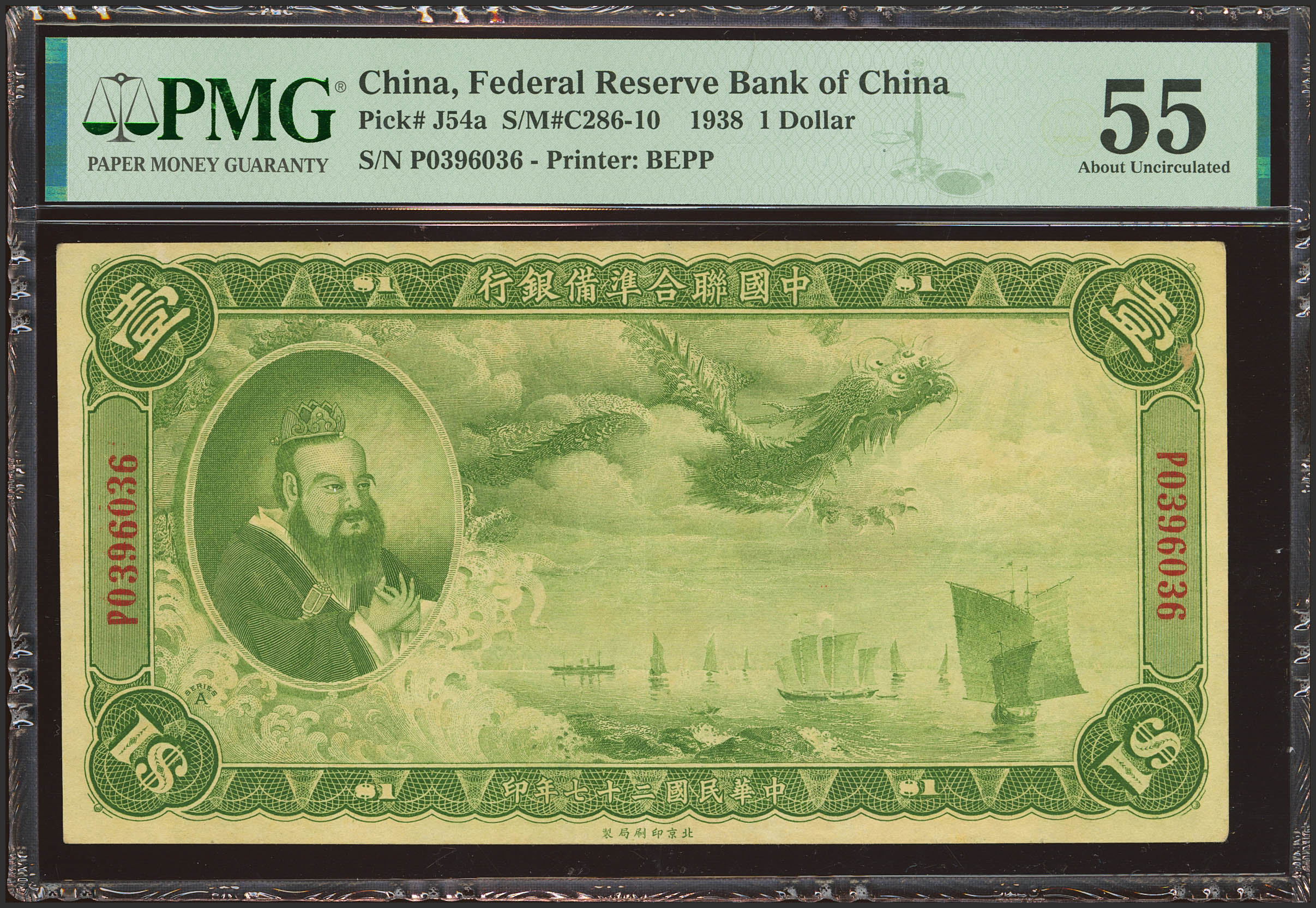 English CHINA-PUPPET BANKS. 1 Dollar. 1938. Federal Reserve Bank. (Pick: J54a, SM: C268-10). PMG55.
