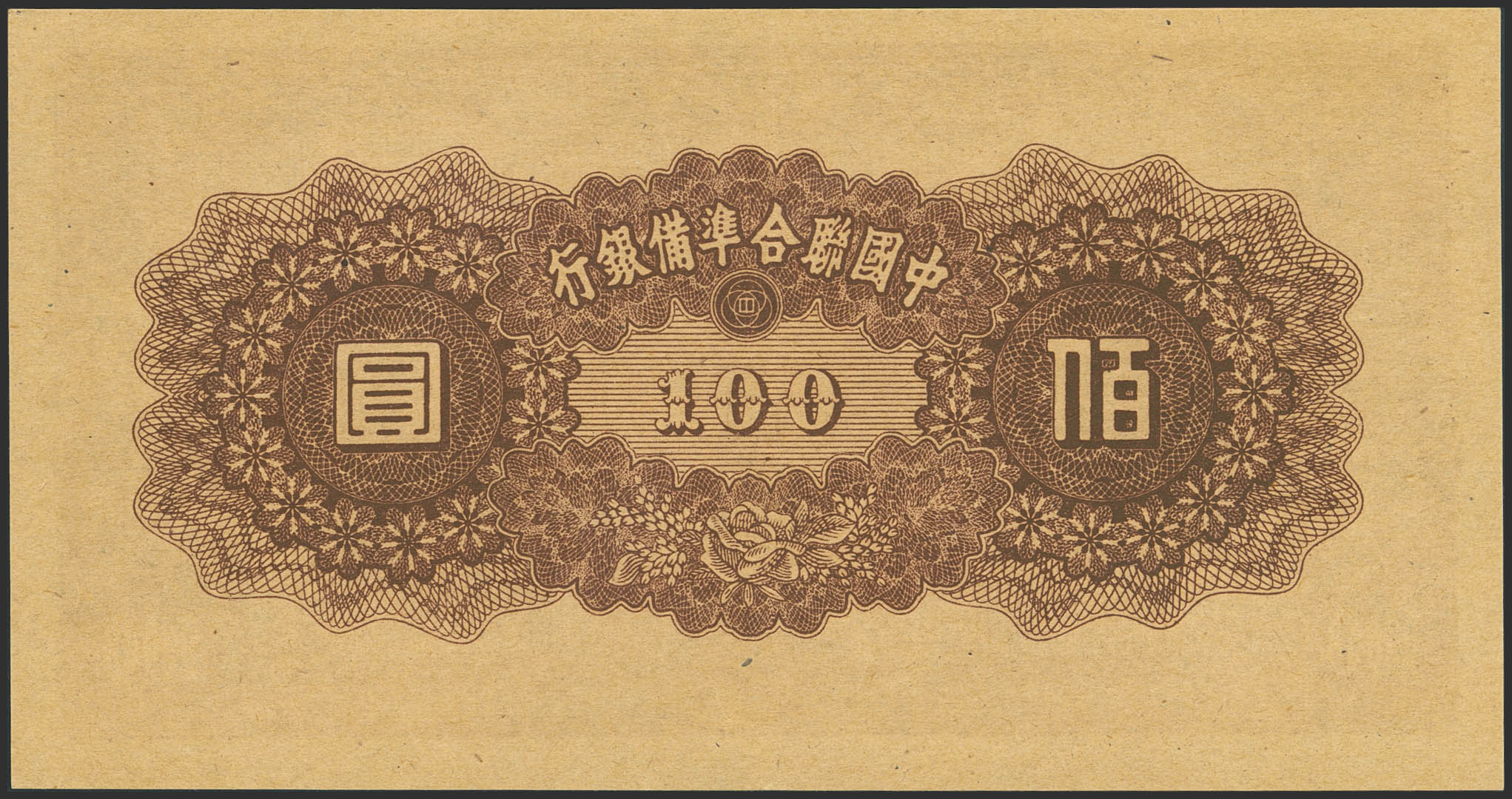 English CHINA-PUPPET BANKS. 100 Yuan. (1945ca). Federal Reserve Bank. (Pick: J88a). Almost Uncirculated.