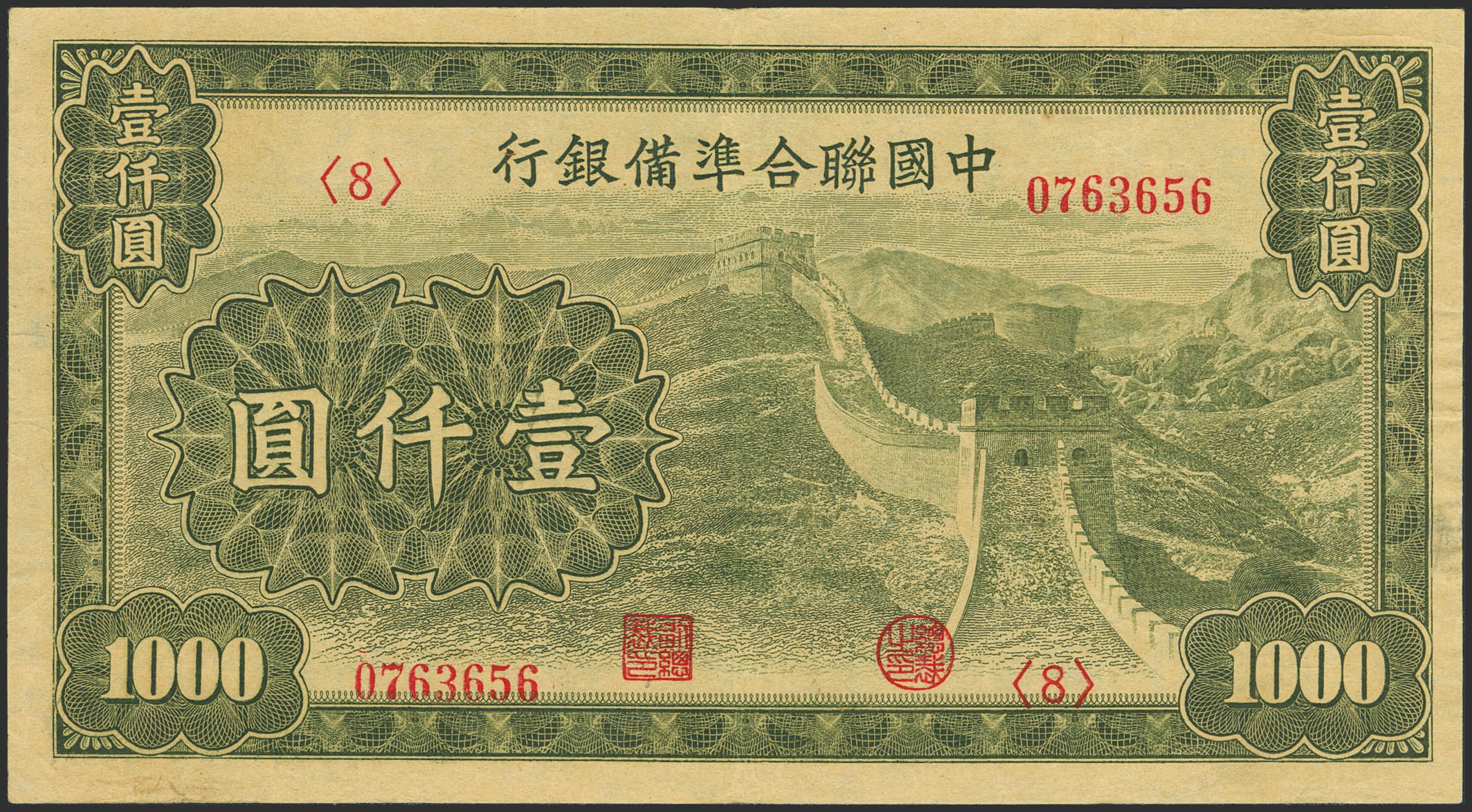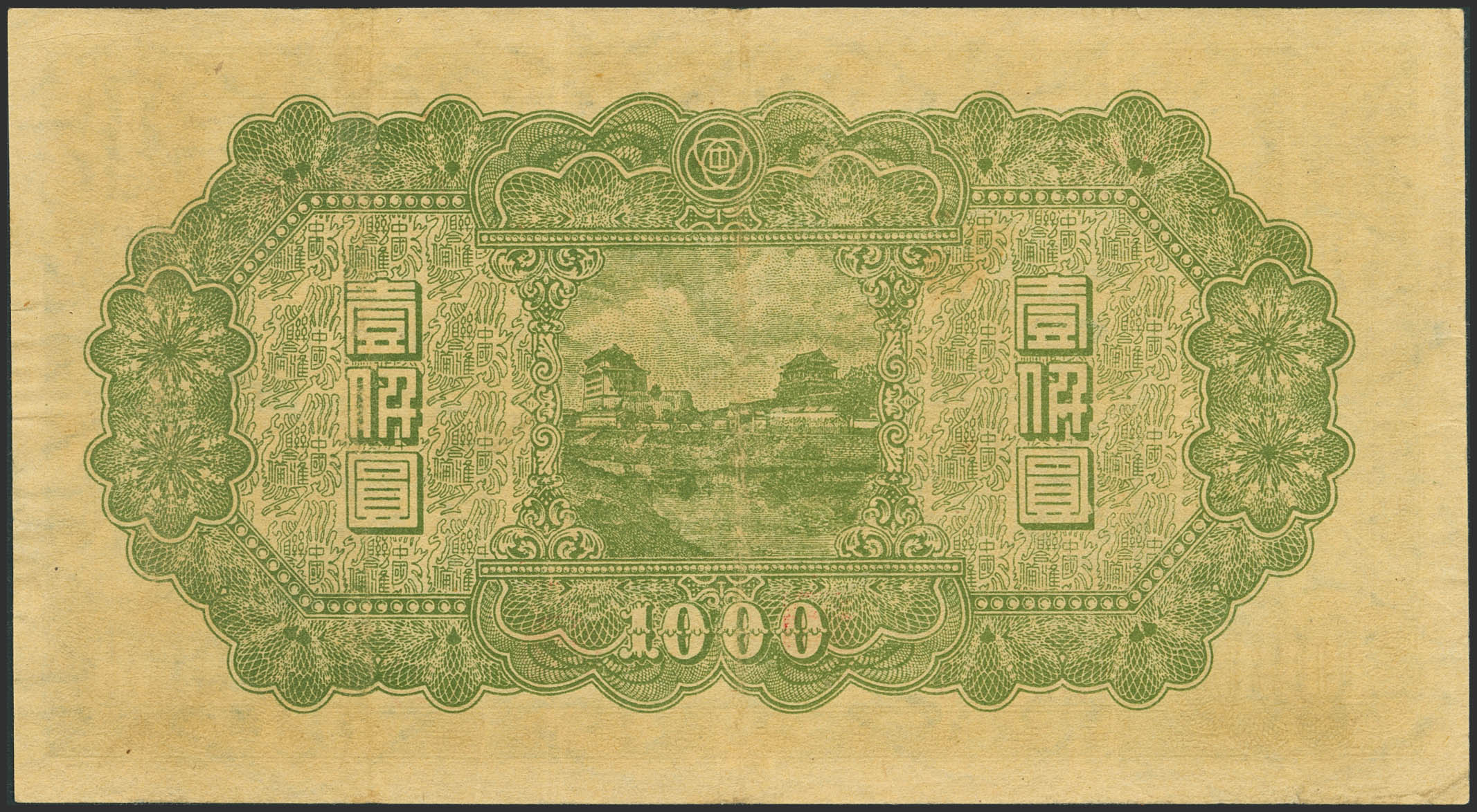 CHINA-PUPPET BANKS. 1000 Yuan. (1945ca). Federal Reserve Bank. (Pick: J91c). Very Fine.