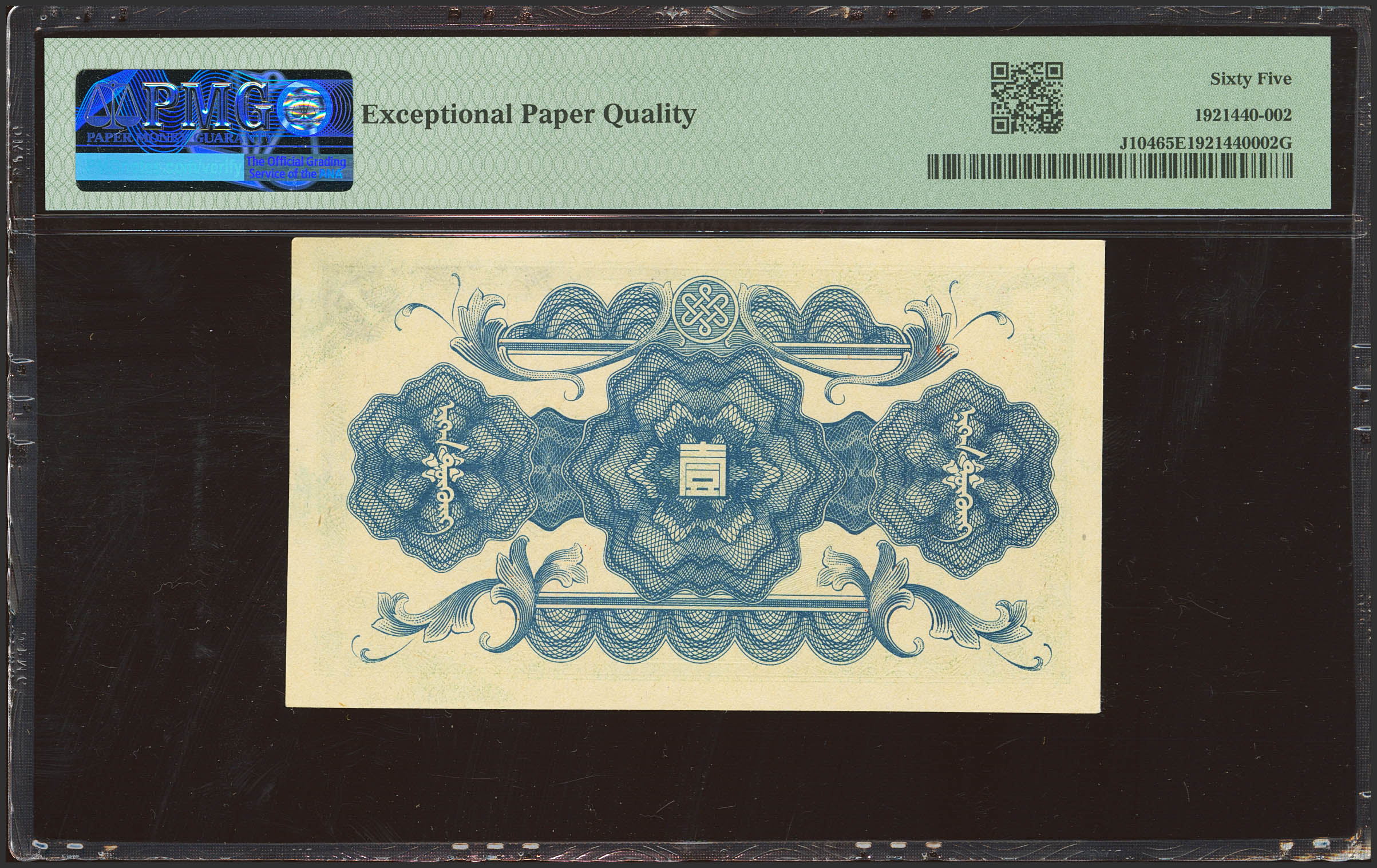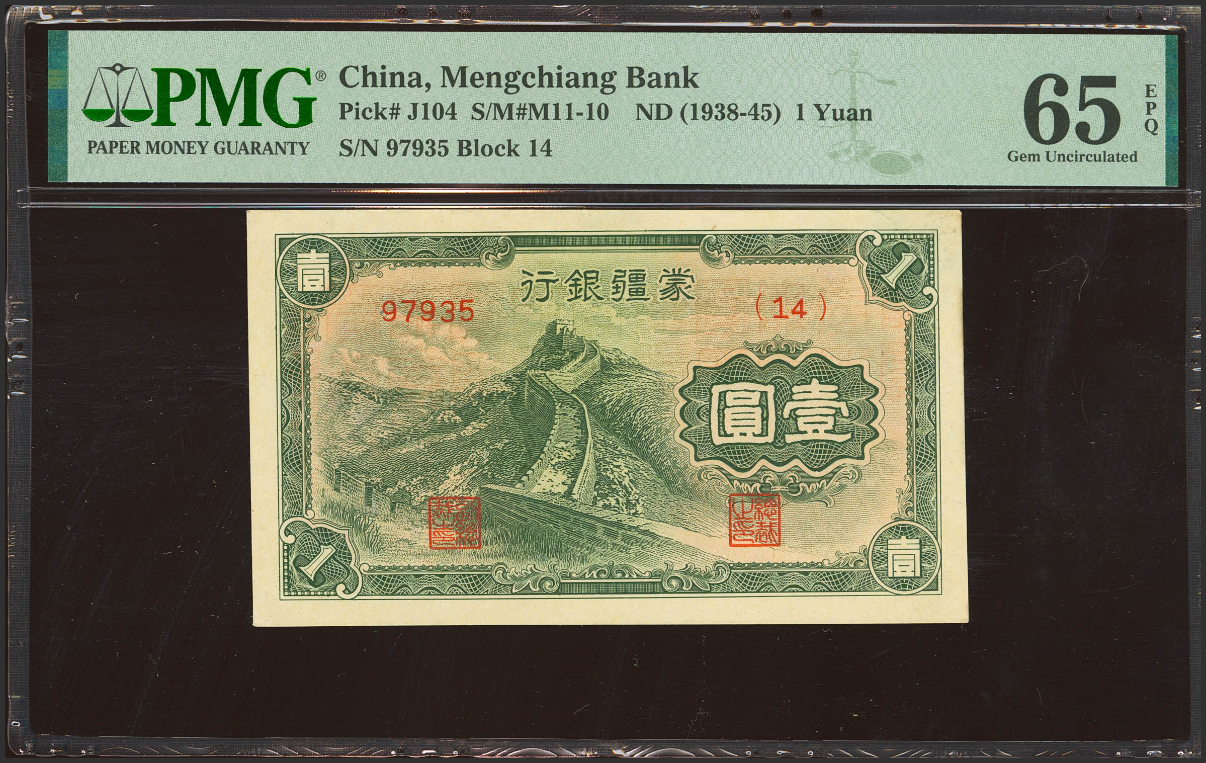 English CHINA-PUPPET BANKS. 1 Yuan. (1940ca). Mengchiang Bank. (Pick: J104a, SM: M11-10). PMG65EPQ.