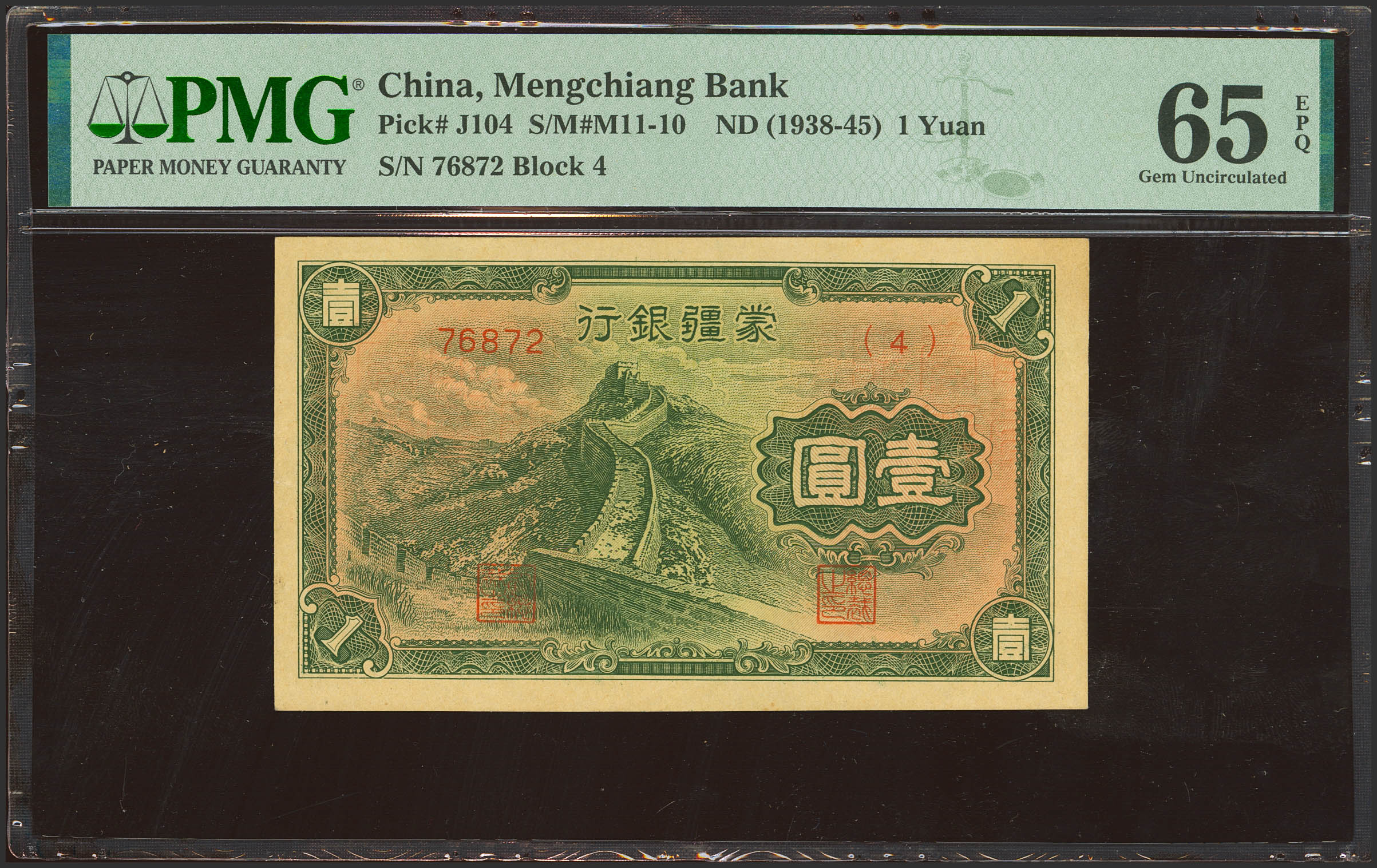 CHINA-PUPPET BANKS. 1 Yuan. (1940ca). Mengchiang Bank. (Pick: J104a, SM: M11-10). PMG65EPQ.