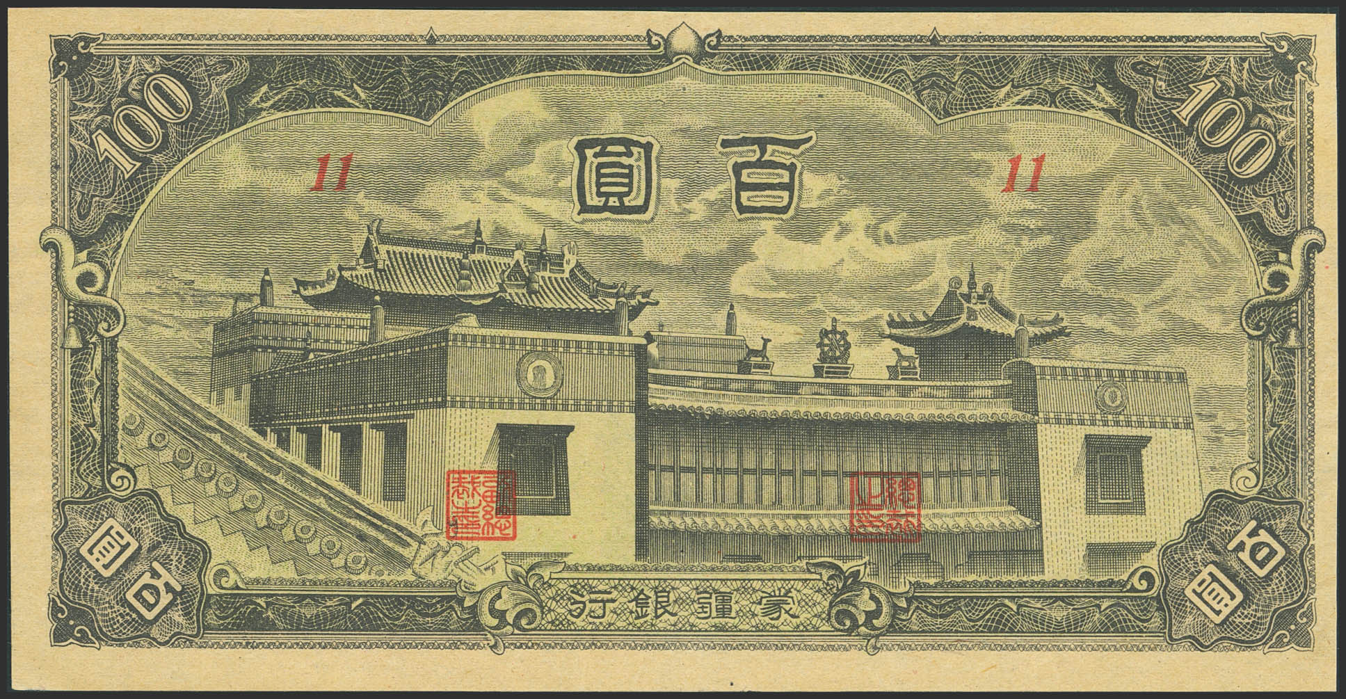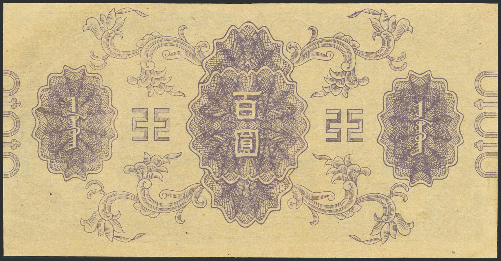 CHINA-PUPPET BANKS. 100 Yuan. (1938ca). Mengchiang Bank. (Pick: J111a). Extremely Fine.