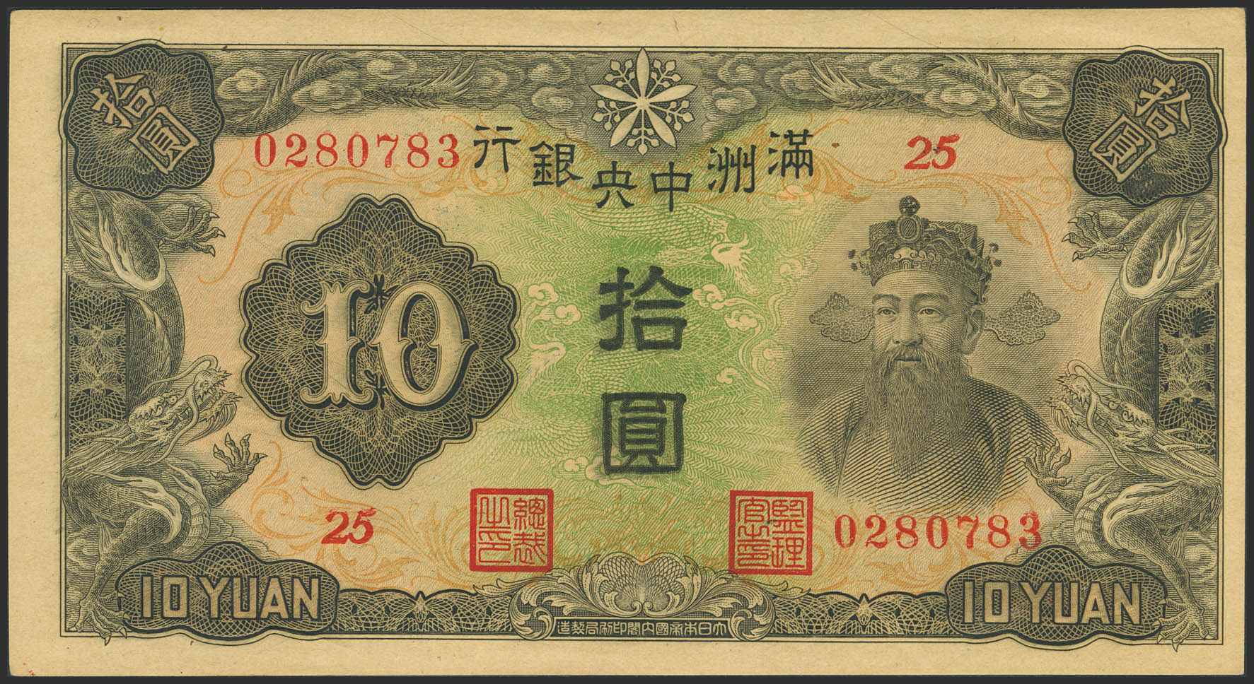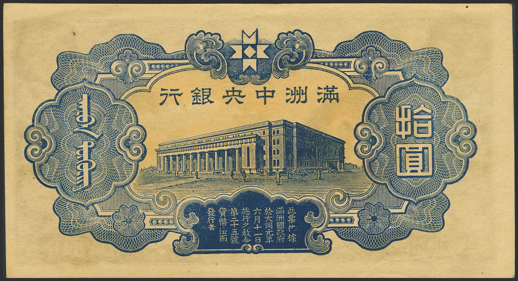 CHINA-MANCHUKUO. 10 Yuan. (1944ca). Central Bank of Manchukuo. (Pick: J137a). Almost Uncirculated.