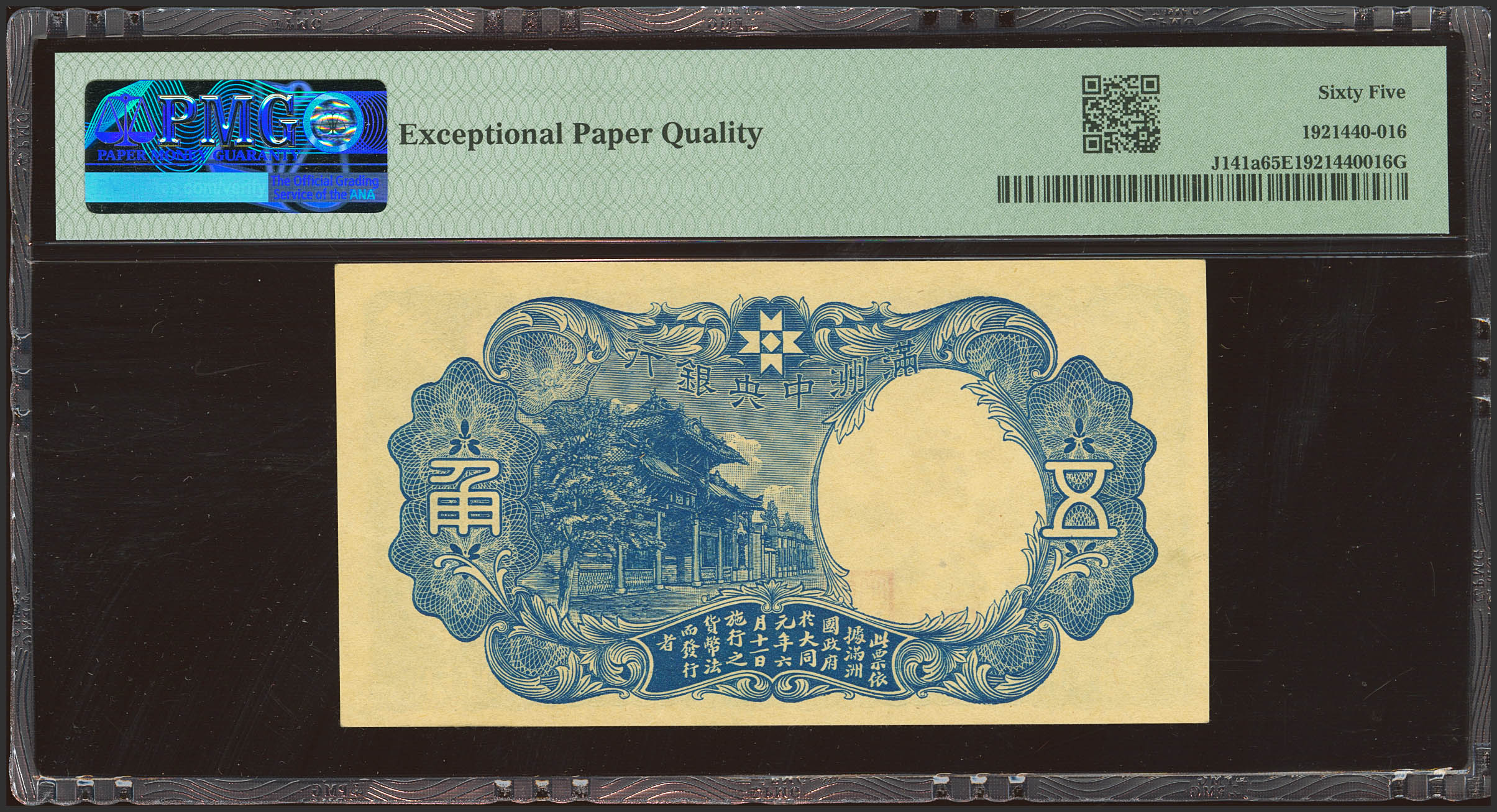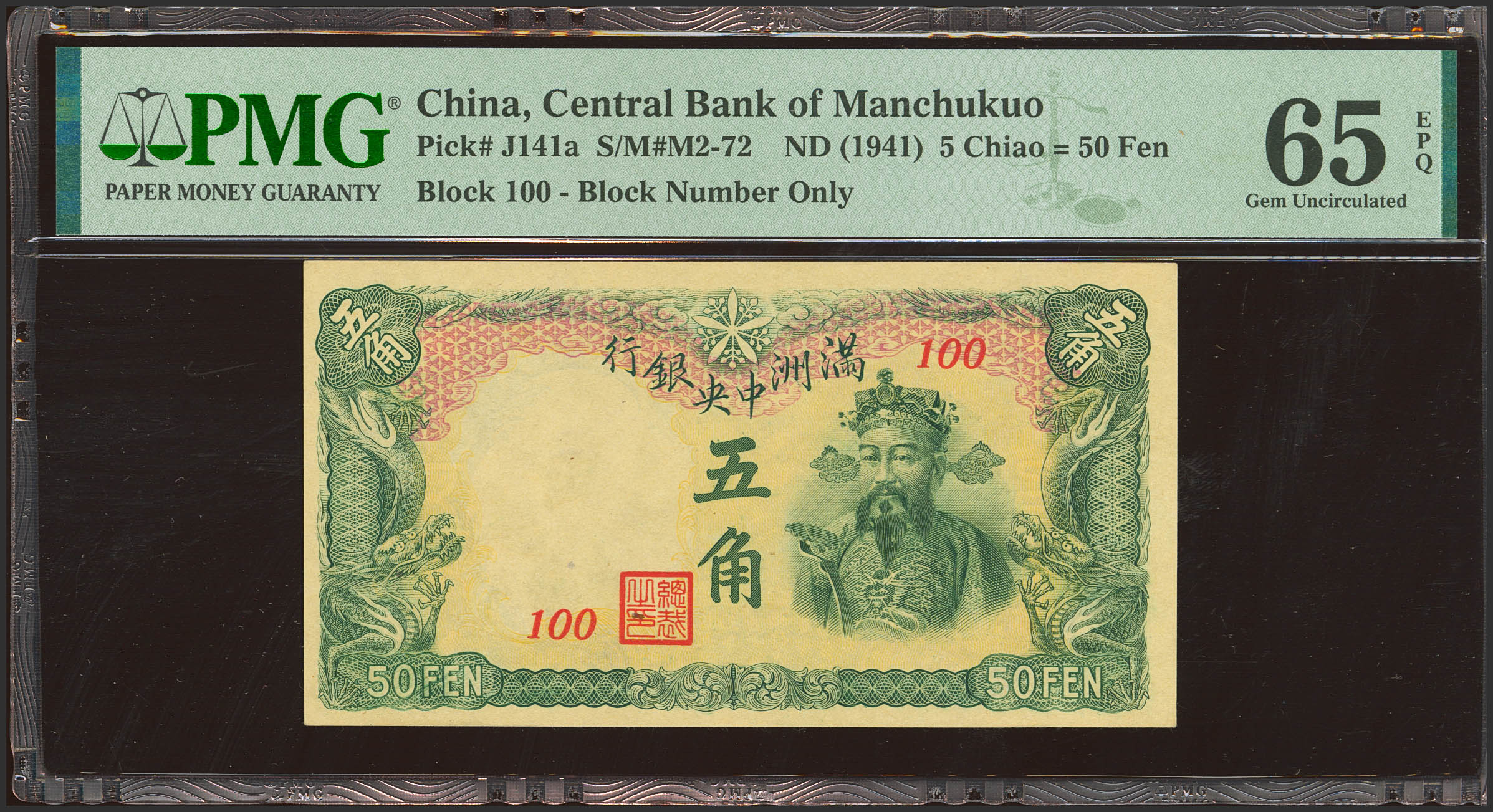 English CHINA-MANCHUKUO. 50 Fen. (1944ca). Central Bank of Manchukuo. (Pick: J141a, SM: M2-72). PMG65EPQ.