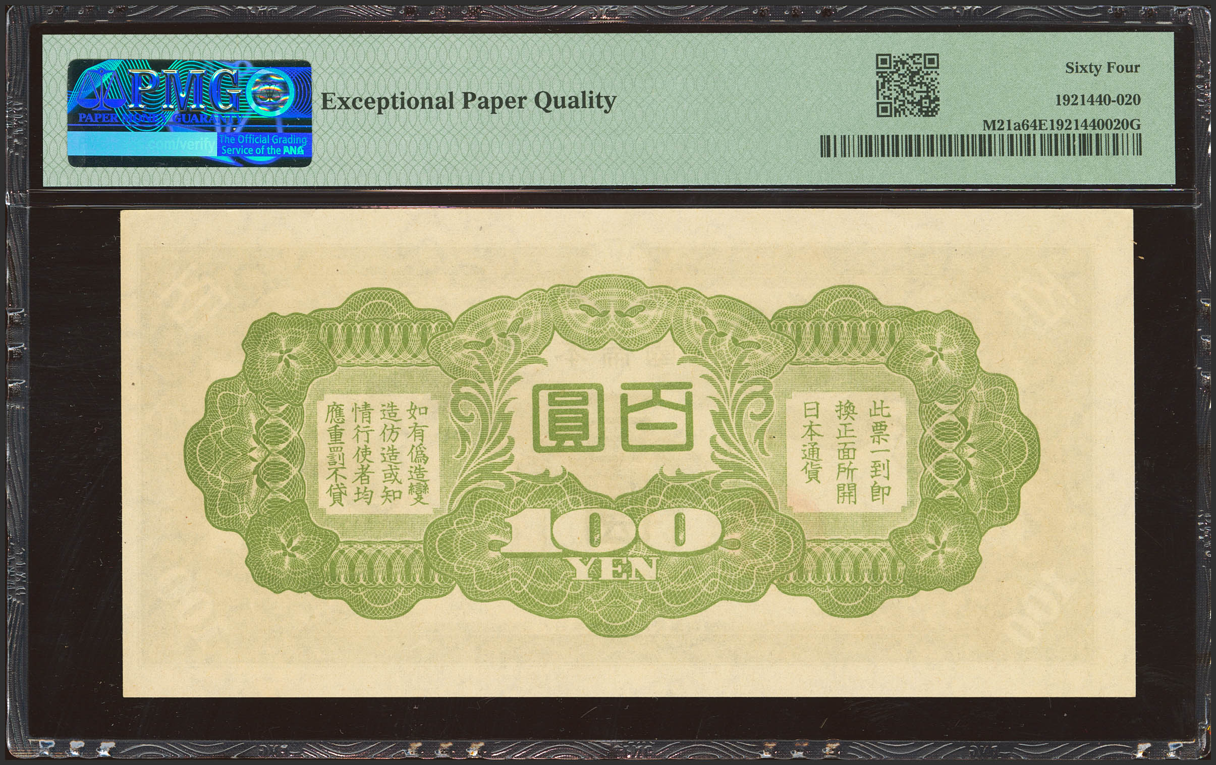 CHINA-JAPANESE MILITARY. 100 Yen. (1945ca). Japanese Imperial Government. (Pick: M21a, SM: T30-14). PMG64EPQ.