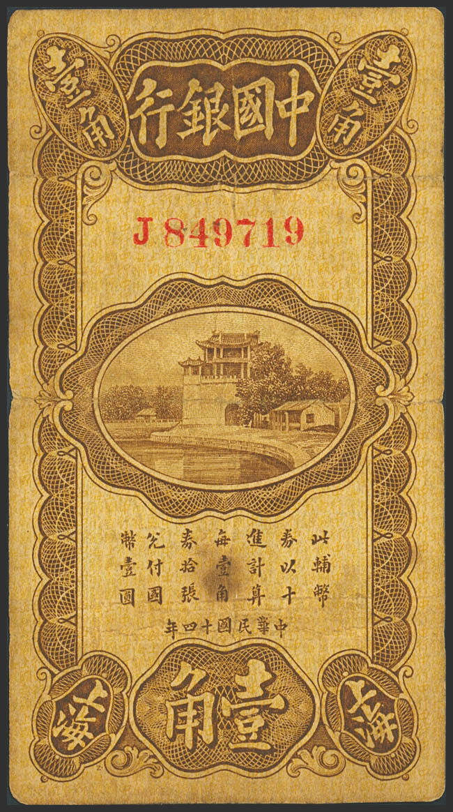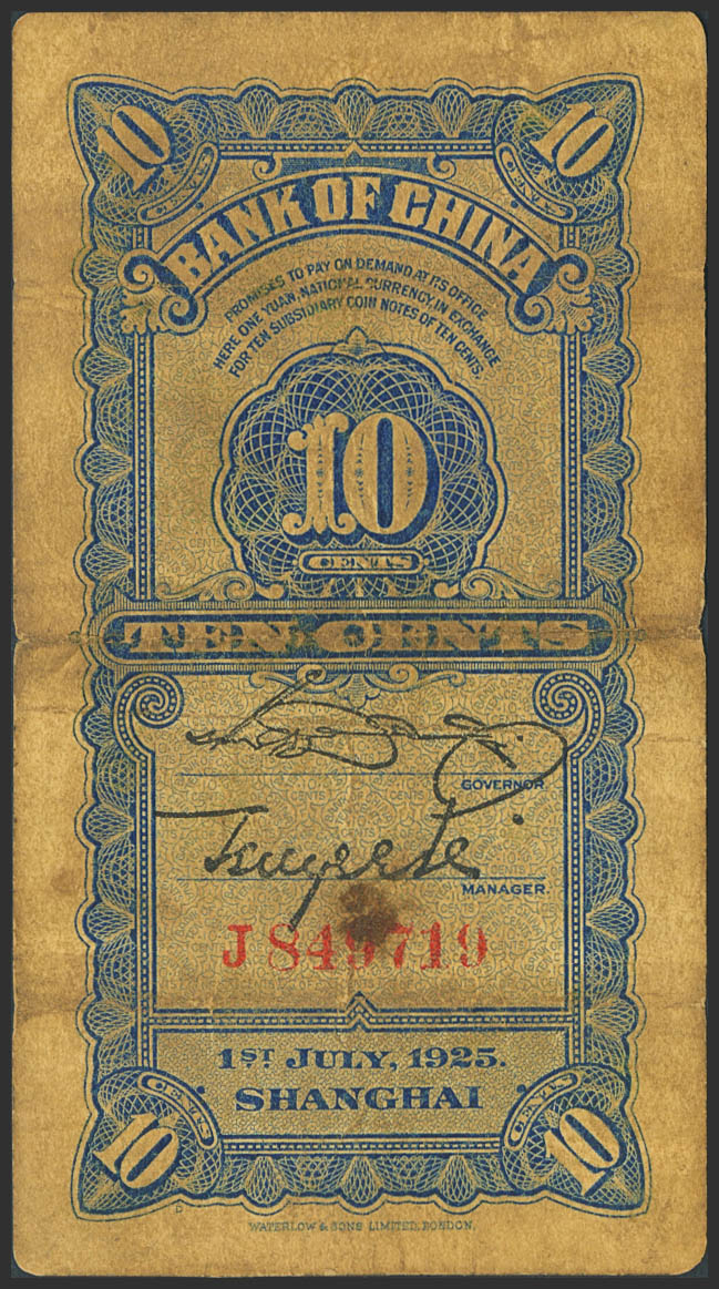 CHINA. 10 Cents. 1 July 1925. Bank of China. (Pick: 63). Very Fine.
