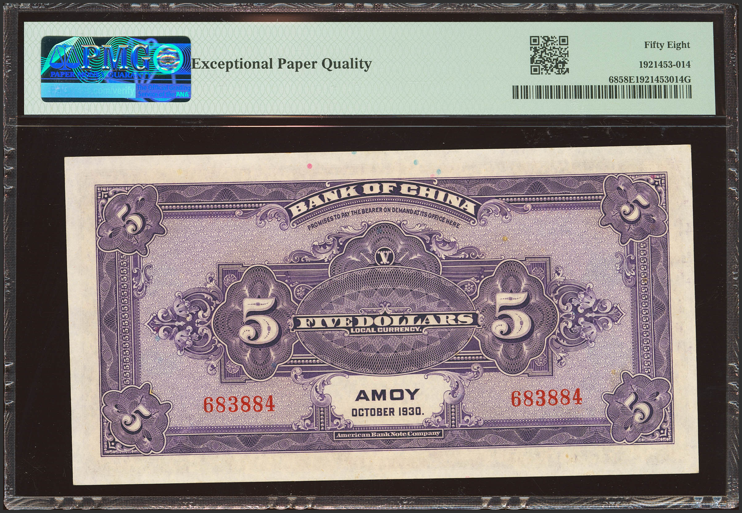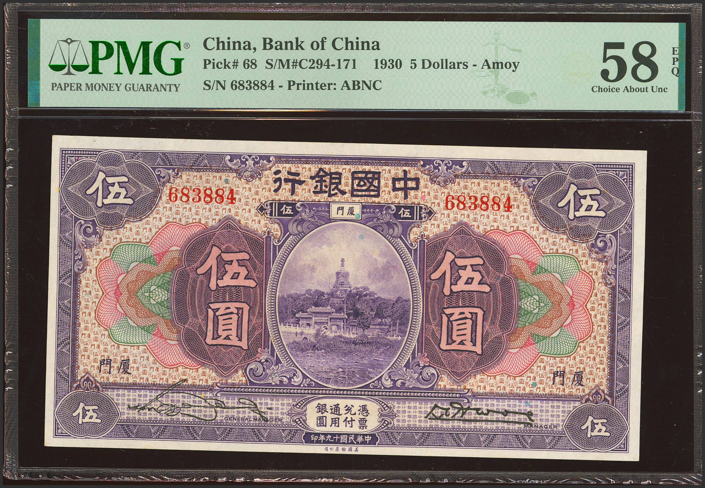 CHINA. 5 Dollars. October 1930. Bank of China. Amoy. Sung Hang-Chang / Huang Pei-Chuan. (Pick: 68, SM: C294-171). PMG58EPQ.