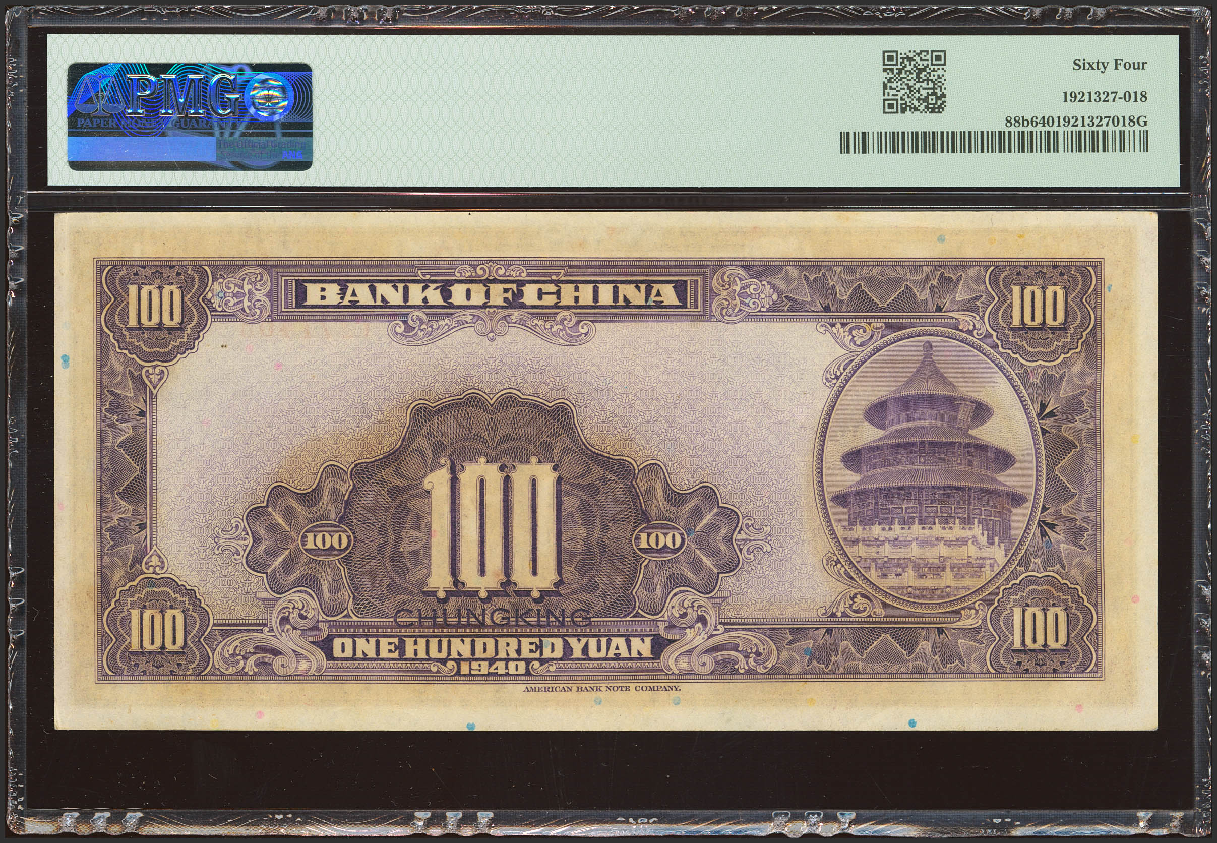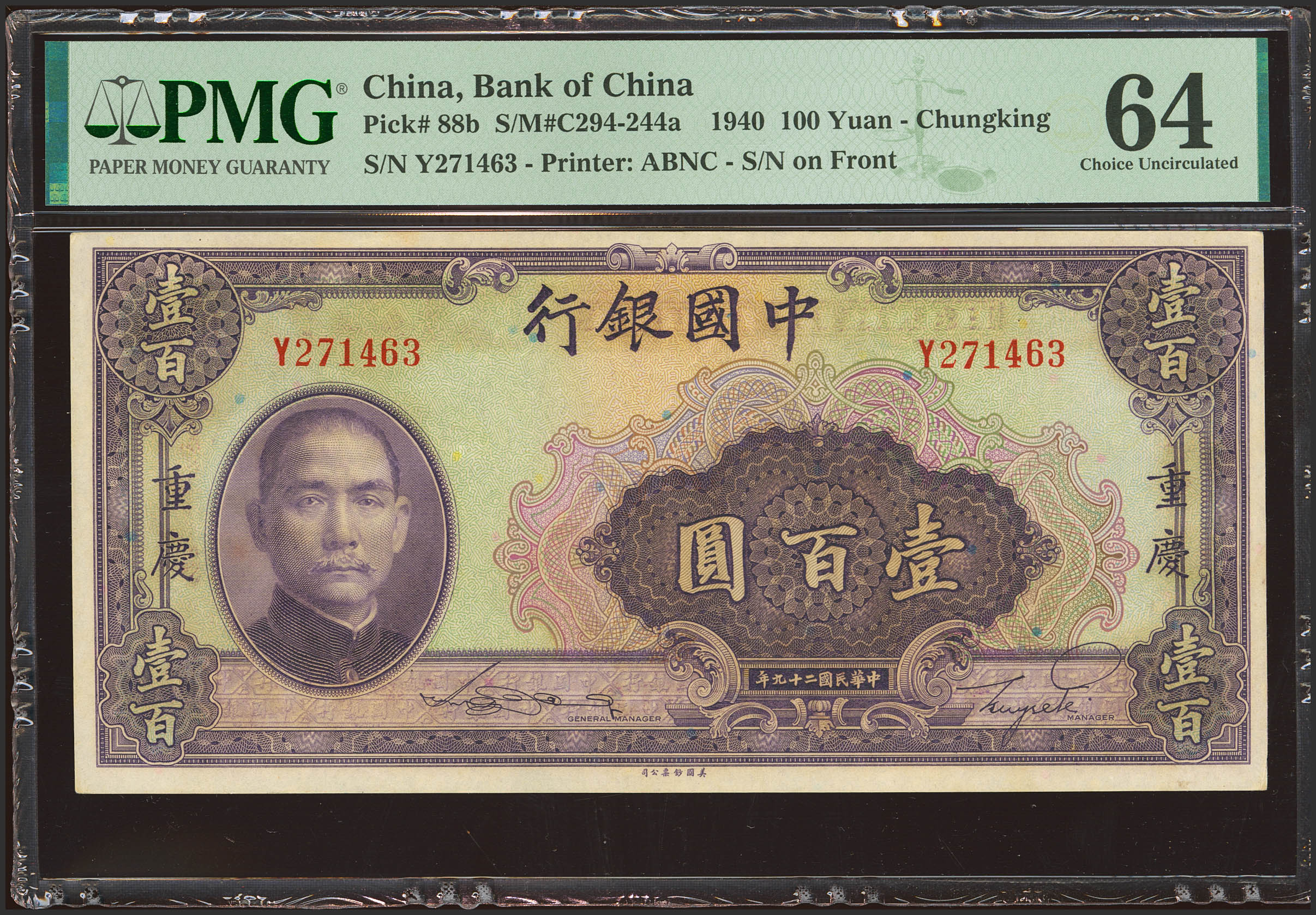 CHINA. 100 Yuan. 1940. Bank of China. Chungking. (Pick: 88b, SM: C294-244a). PMG64.