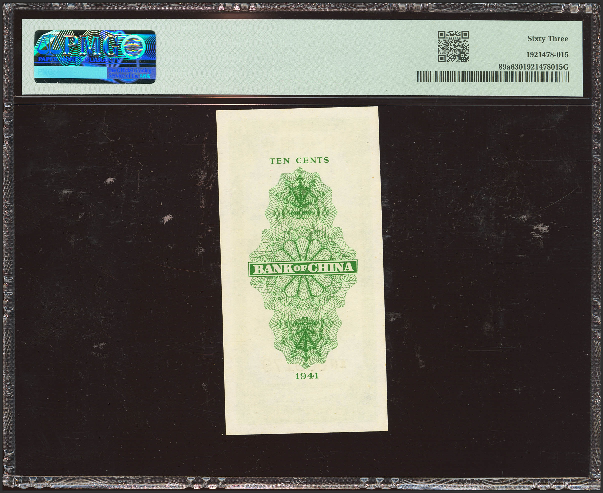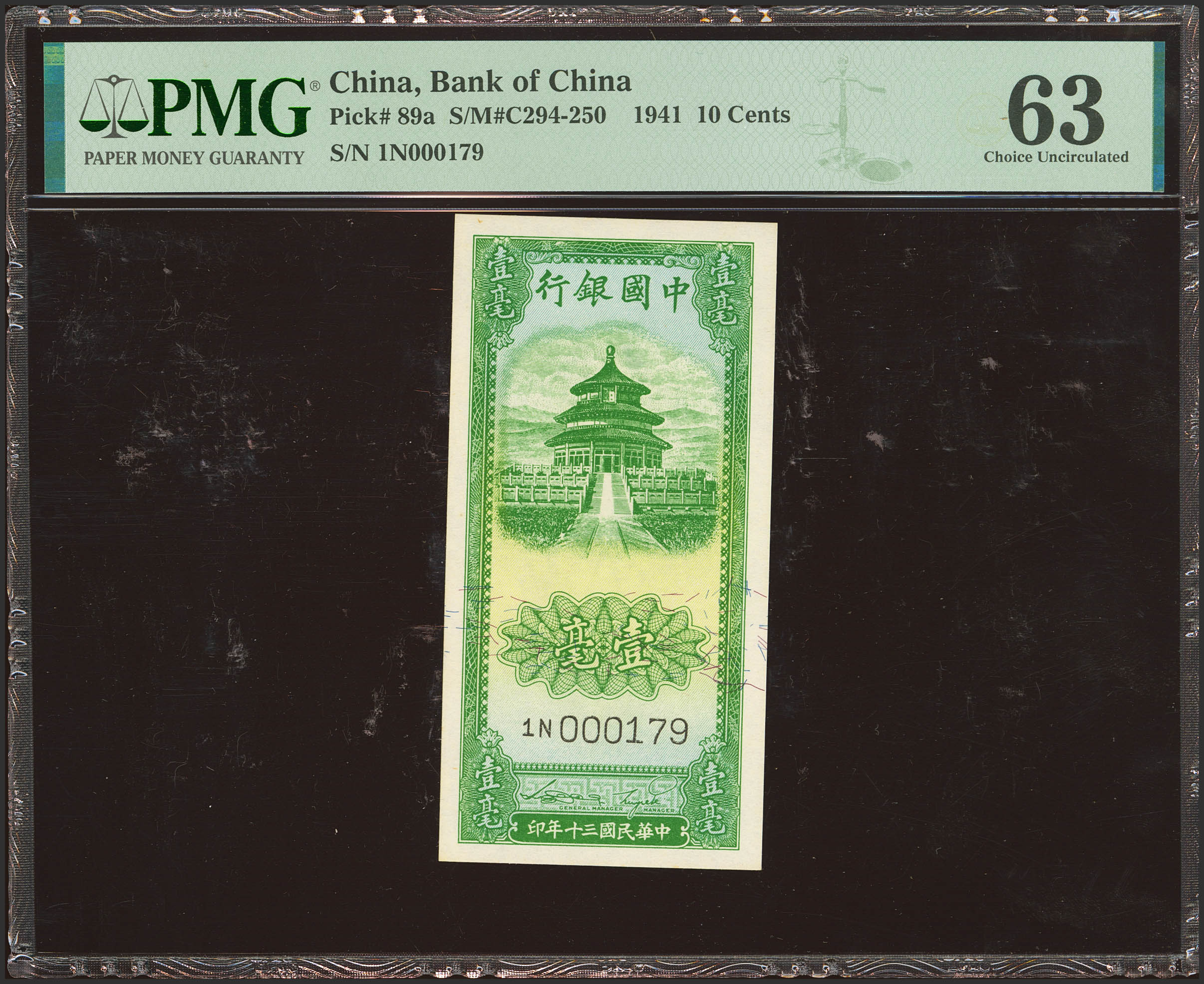 English CHINA. 10 Cents. 1941. Bank of China. (Pick: 89a, SM: C294-250). PMG63.