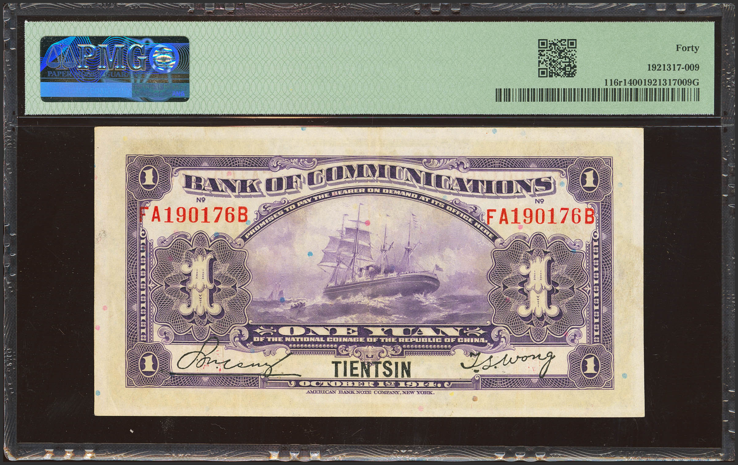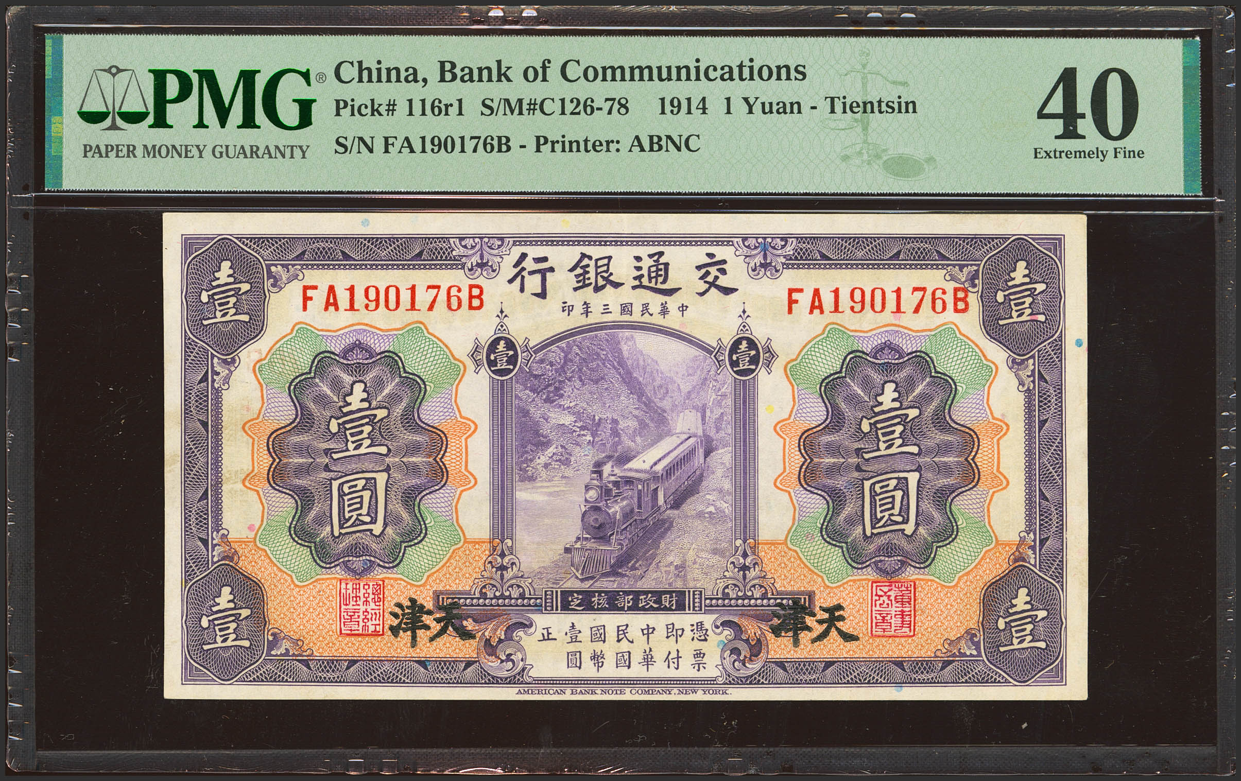 CHINA. 1 Yuan. 1 October 1914. Tientsin. Bank of Communications. (Pick: 116r1, SM: C126-78). PMG40.