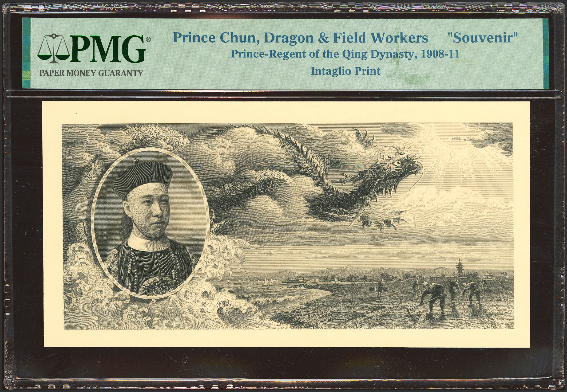 CHINA. Prince Chun. Dragon & Field Workers. (1908ca). Prince-Regent of the Qing Dynasty. Intaglio Print. (Pick: Not listed). Uncirculated. PMGSOUVENIR.