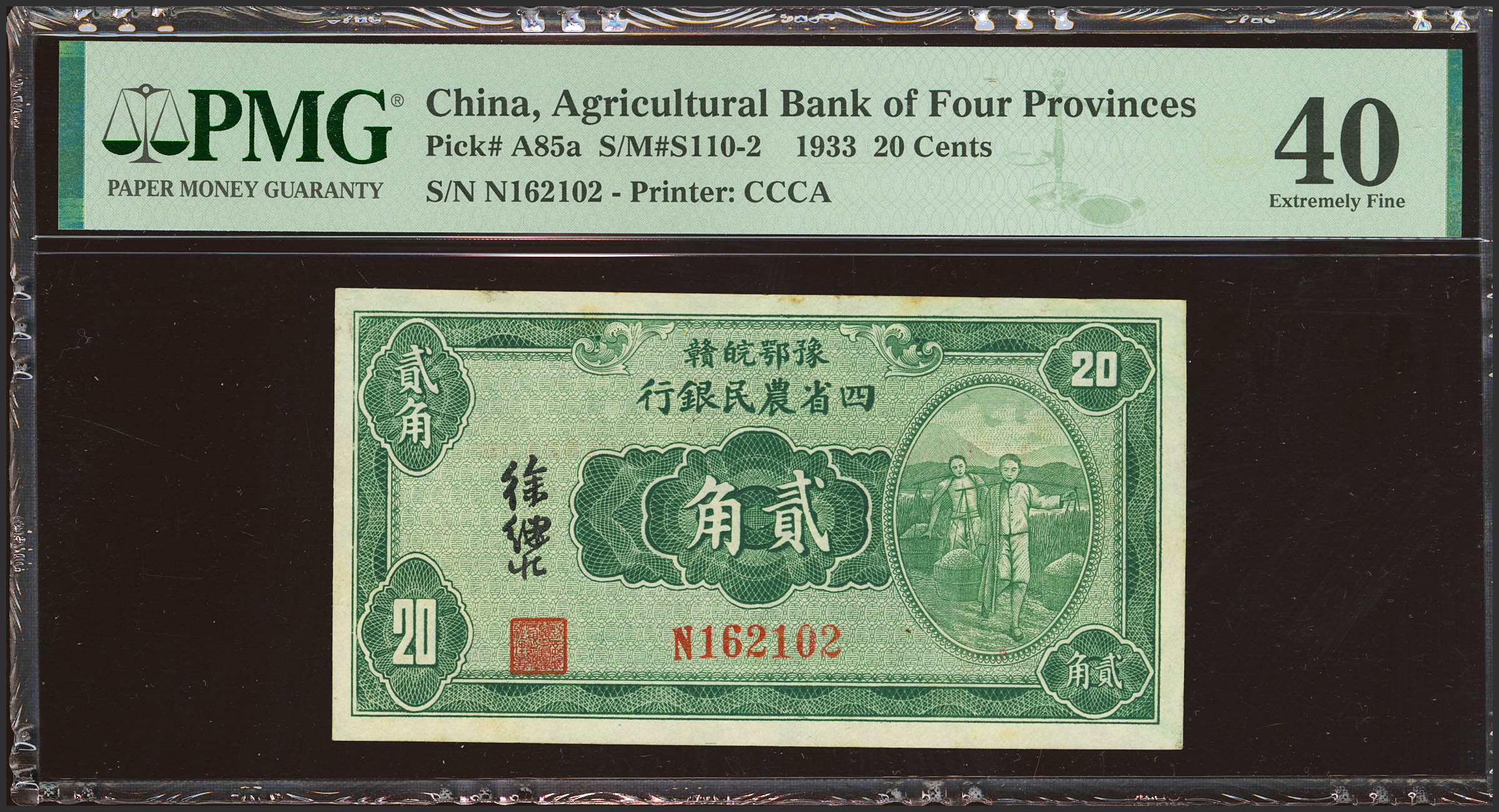 CHINA. 20 Cents. 1933. Agricultural Bank of Four Provinces. (Pick: A85a, SM: S110-2). PMG40 (minor stains).
