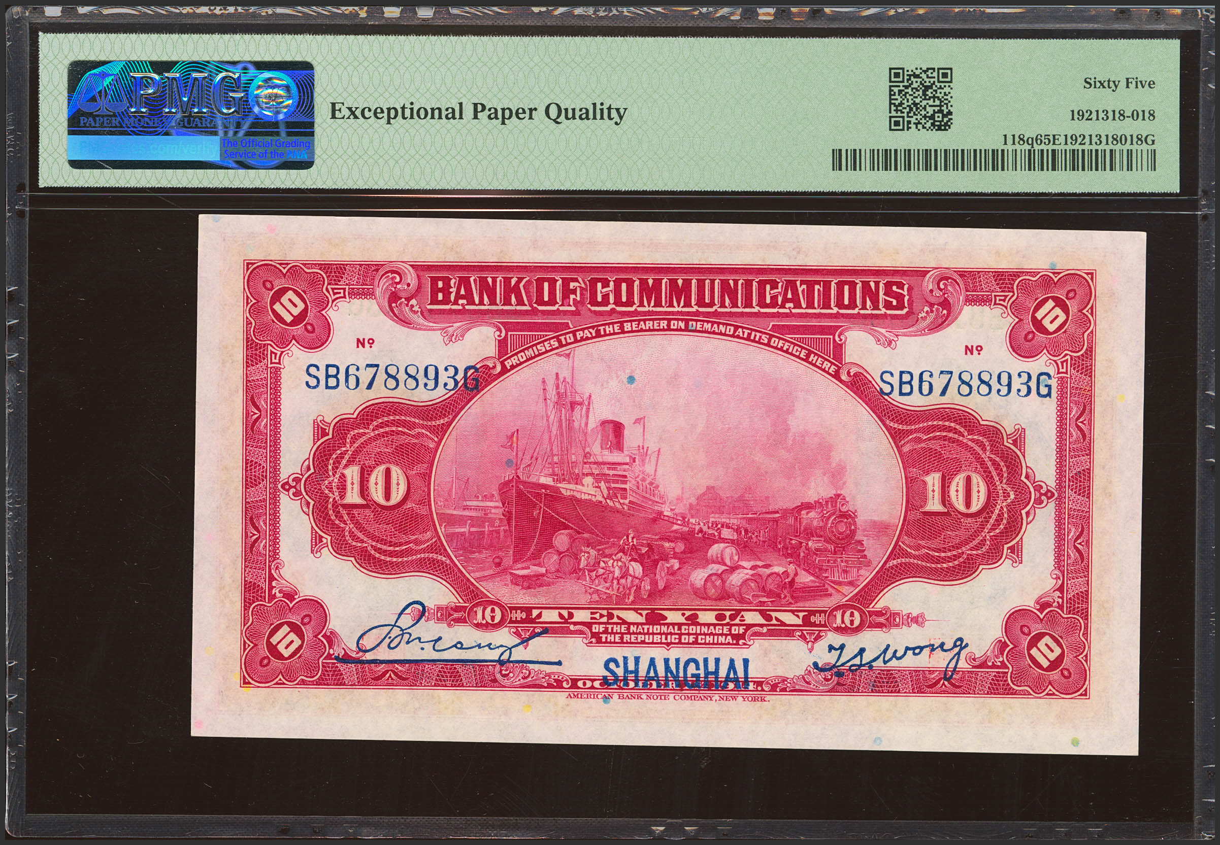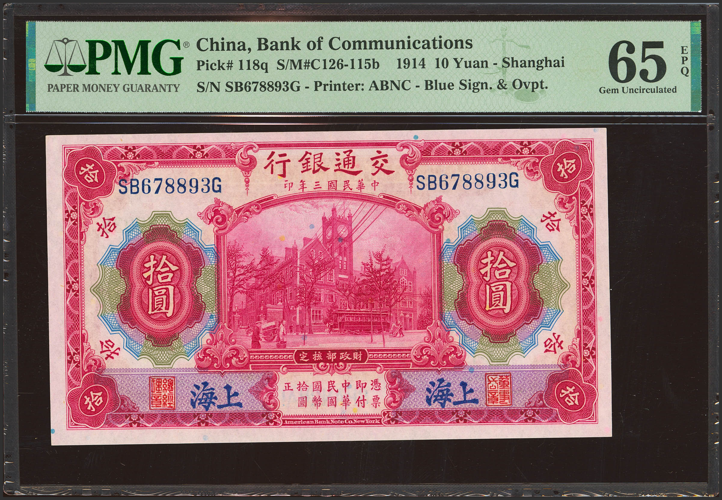 English CHINA. 10 Yuan. 1 October 1914. Bank of Communication. Shanghai. (Pick: 118q). PMG65EPQ.