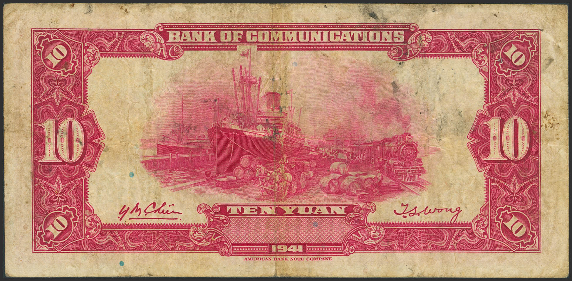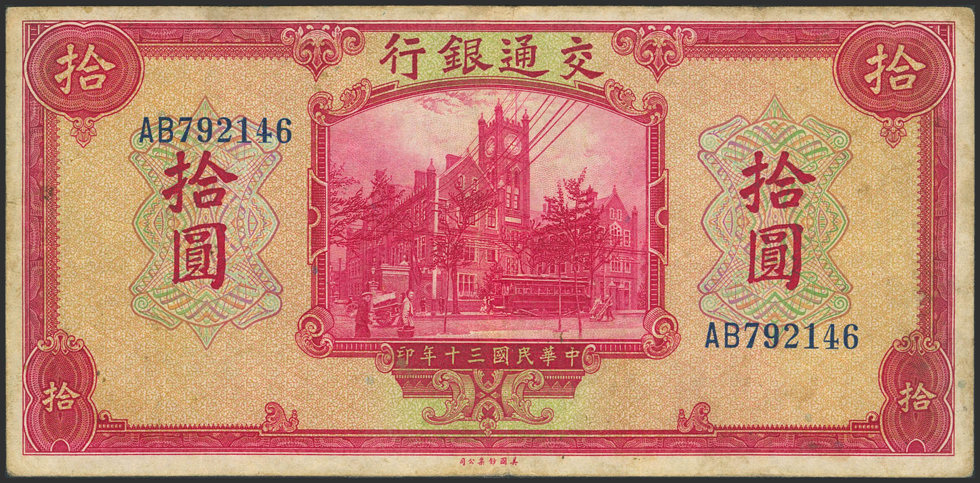 CHINA. 10 Yuan. 1941. Bank of Communication. (Pick: 158). Very Fine.