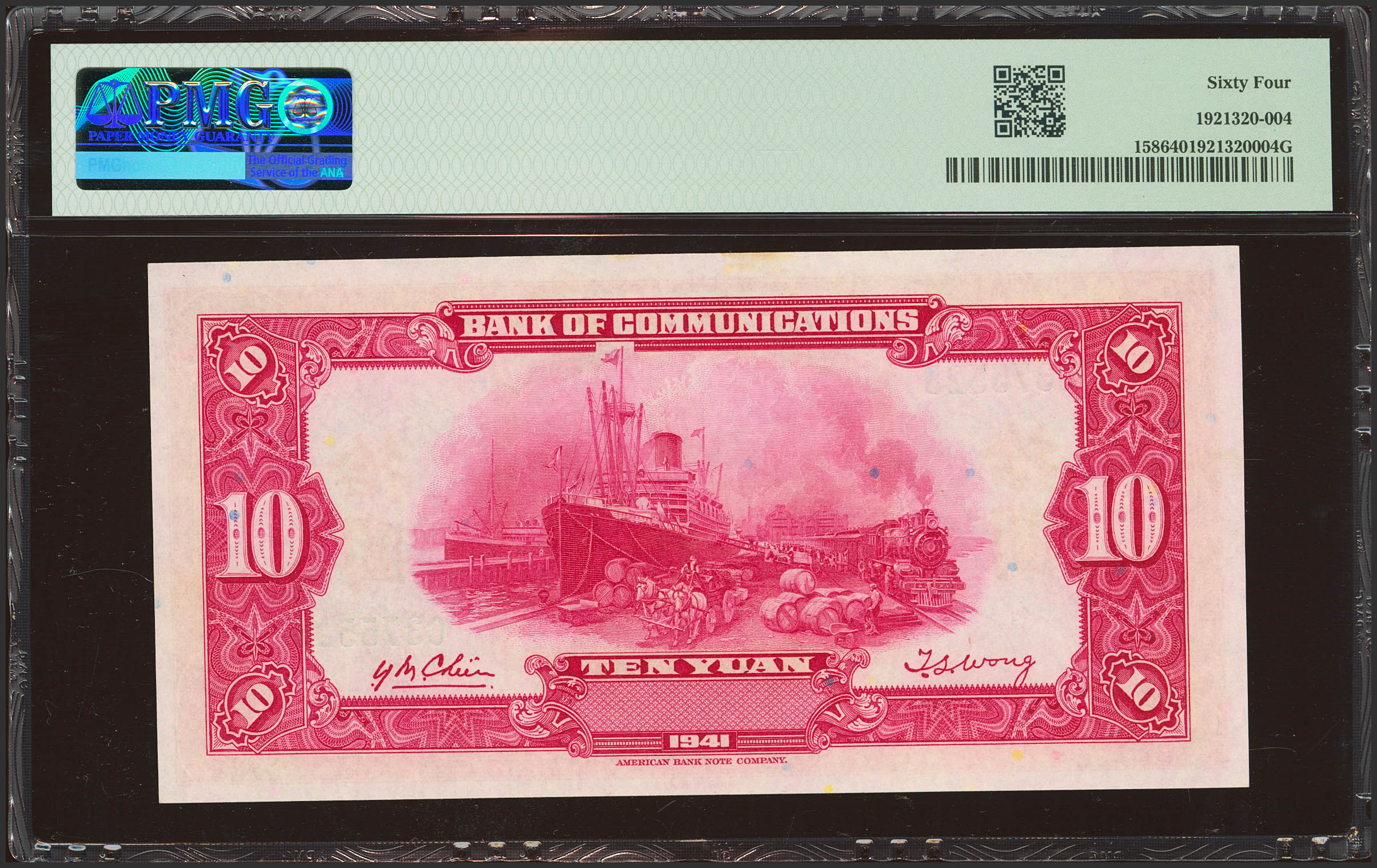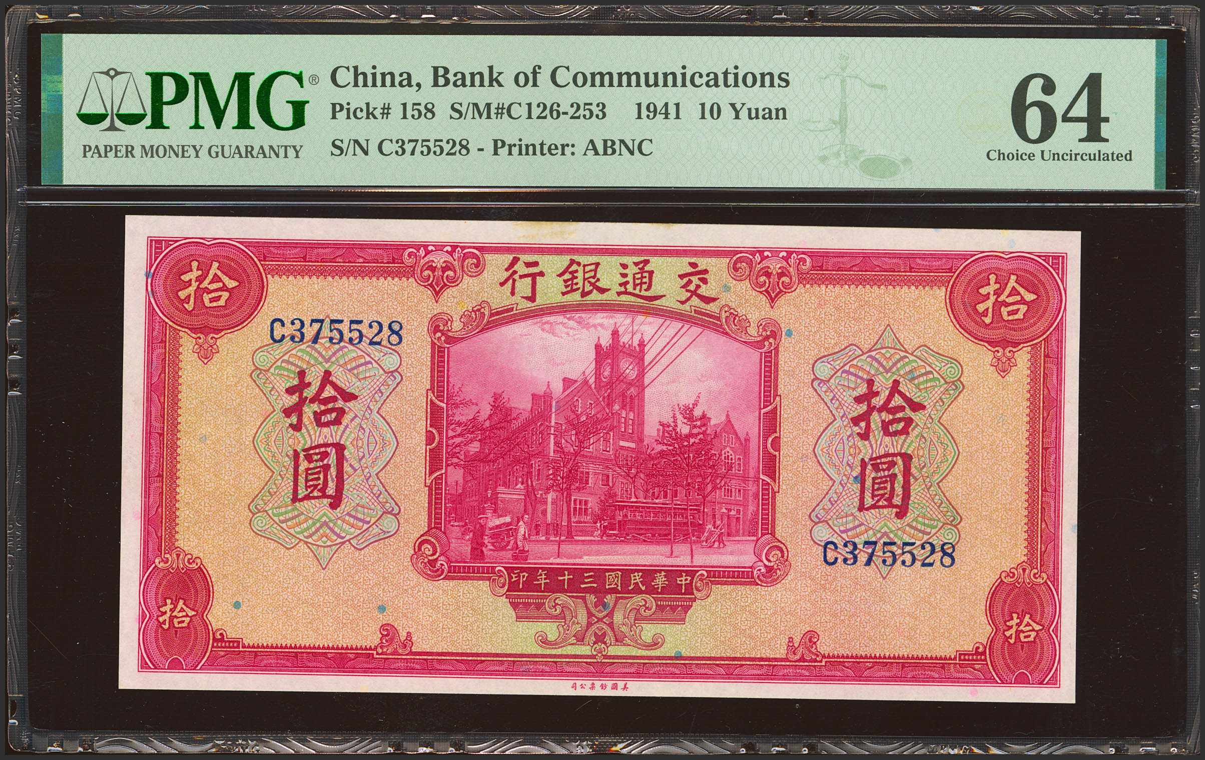 CHINA. 10 Yuan. 1941. Bank of Communication. (Pick: 158, SM: C126-253). PMG64.