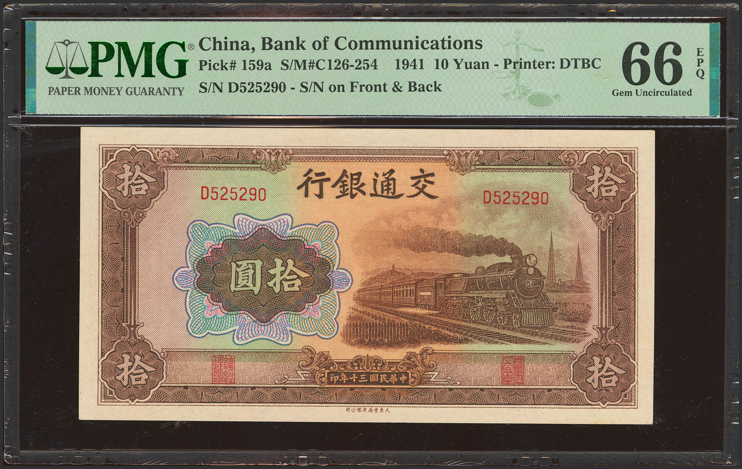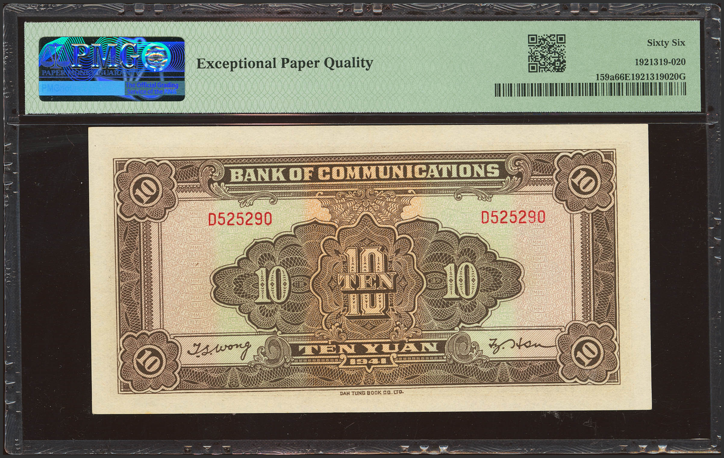 CHINA. 10 Yuan. 1941. Bank of Communication. (Pick: 159a, SM: C126-254). PMG66EPQ.
