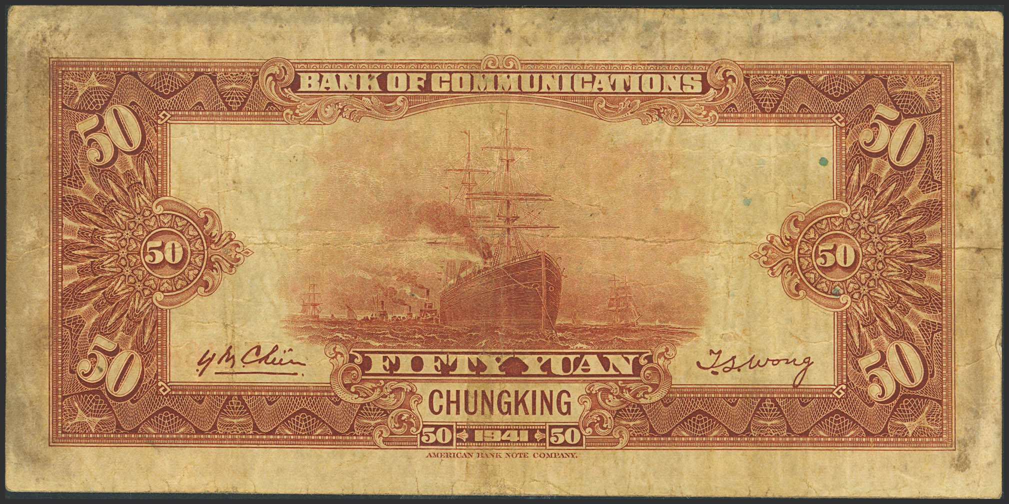CHINA. 50 Yuan. 1941. Bank of Communication. Chungking. (Pick: 161a). More than Fine.