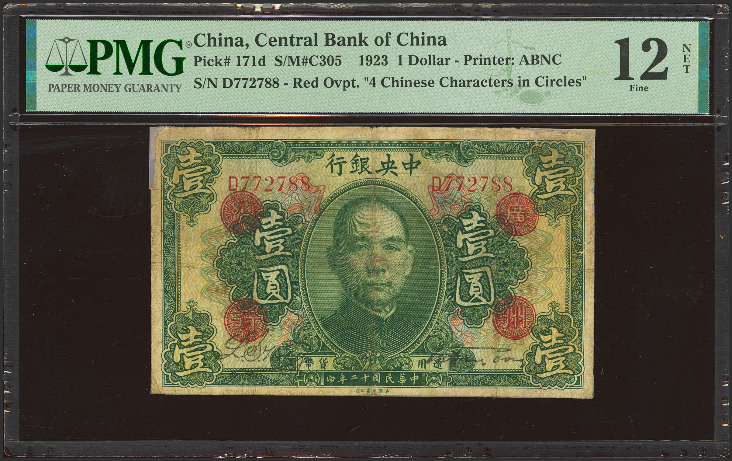 CHINA. 1 Dollar. 1923. Central Bank of China. (Pick: 171a, SM: C305). PMG12NET.