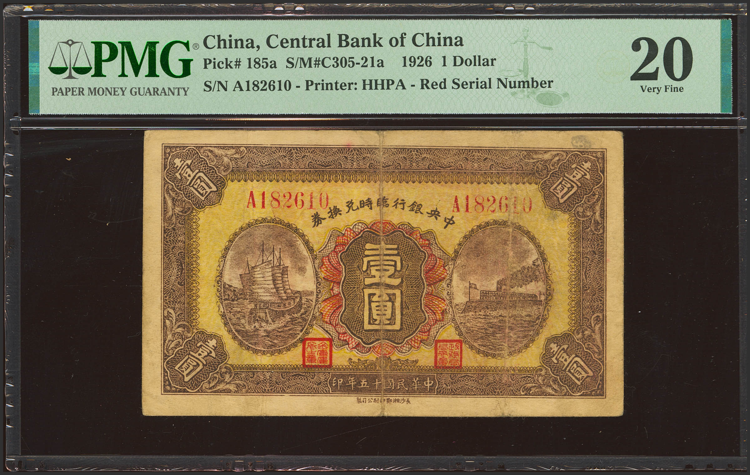 CHINA. 1 Yuan. 1926. Central Bank of China. (Pick: 185a, SM: C305-21a). PMG20 (ink stamp).
