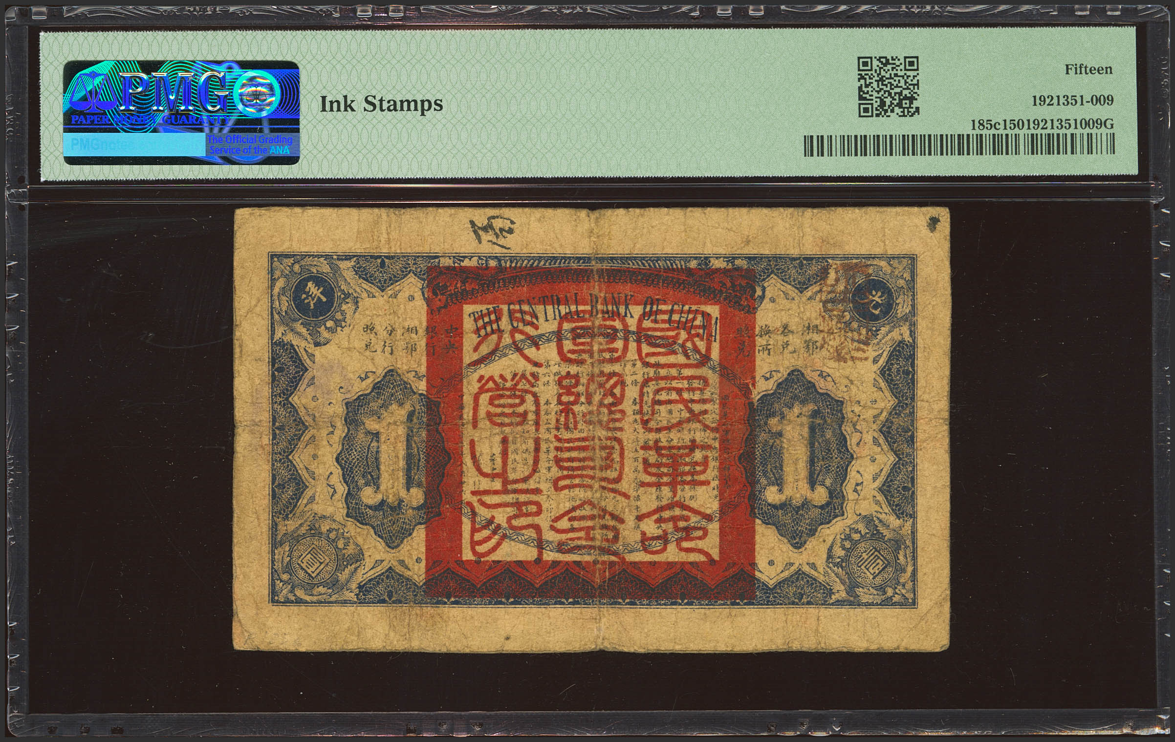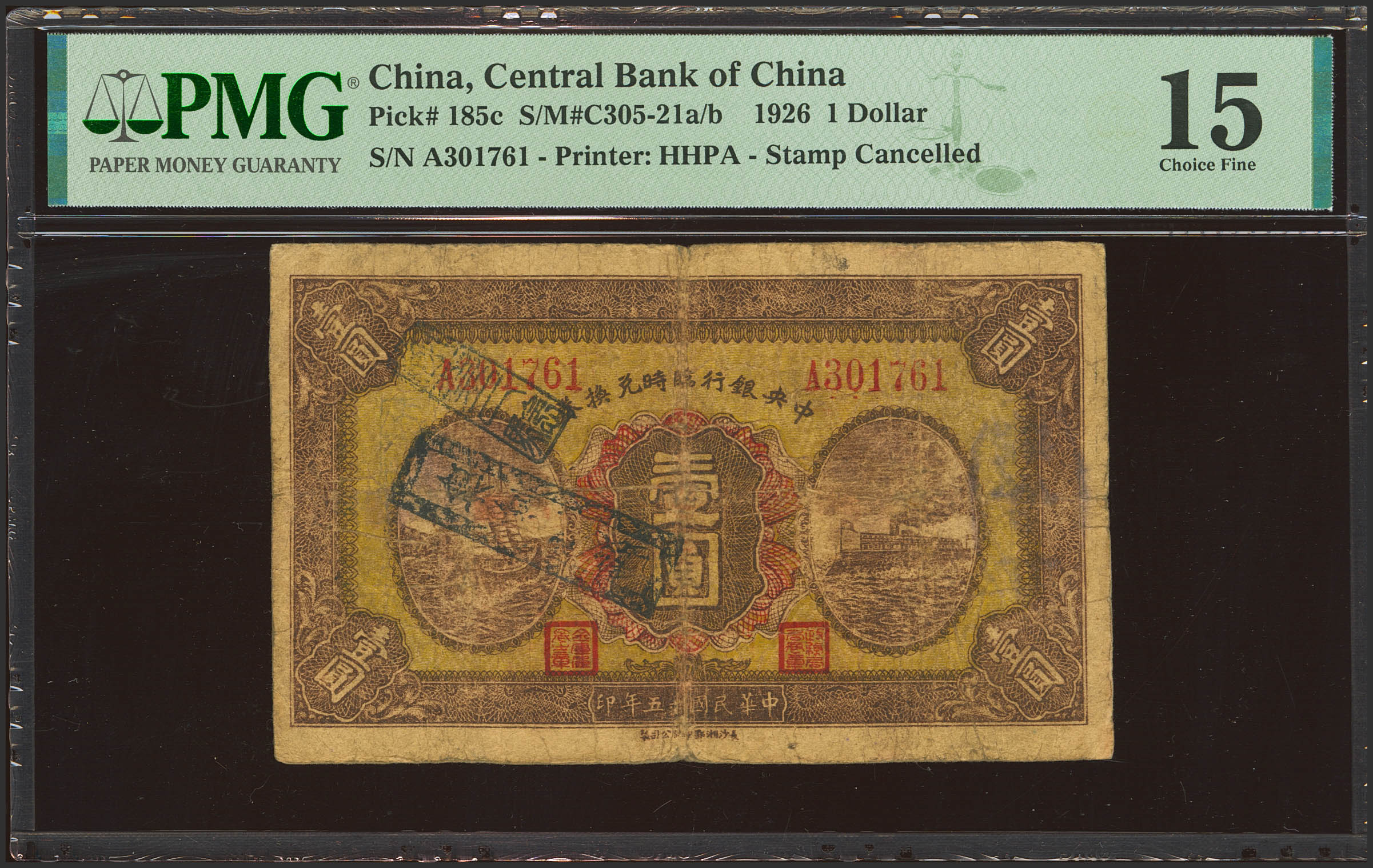 CHINA. 1 Yuan. 1926. Central Bank of China. (Pick: 185c, SM: C305-21a/b). PMG15 (ink stamps).