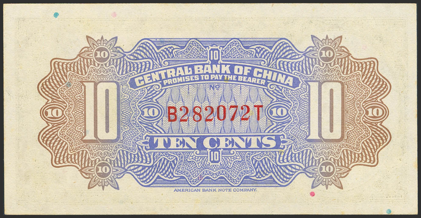 CHINA. 10 Cents. (1924ca). Central Bank of China. (Pick: 193b). Less than Uncirculated.