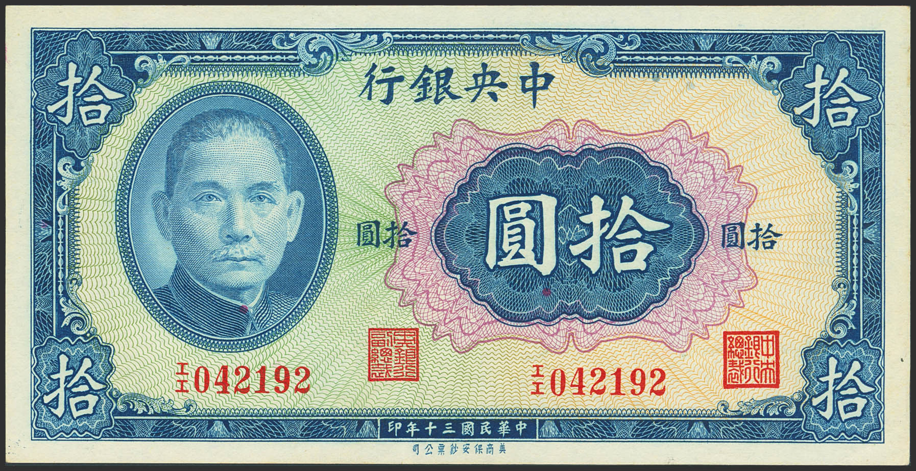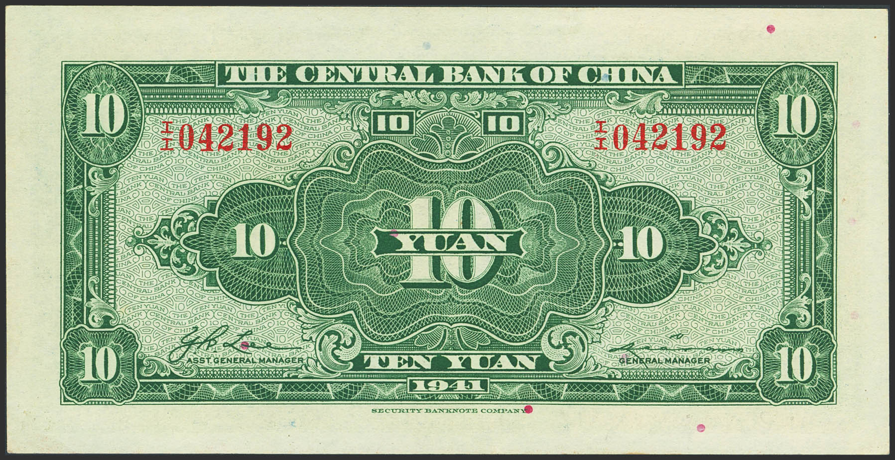CHINA. 10 Yuan. 1941. Central Bank of China. (Pick: 239b). More than Extremely Fine.