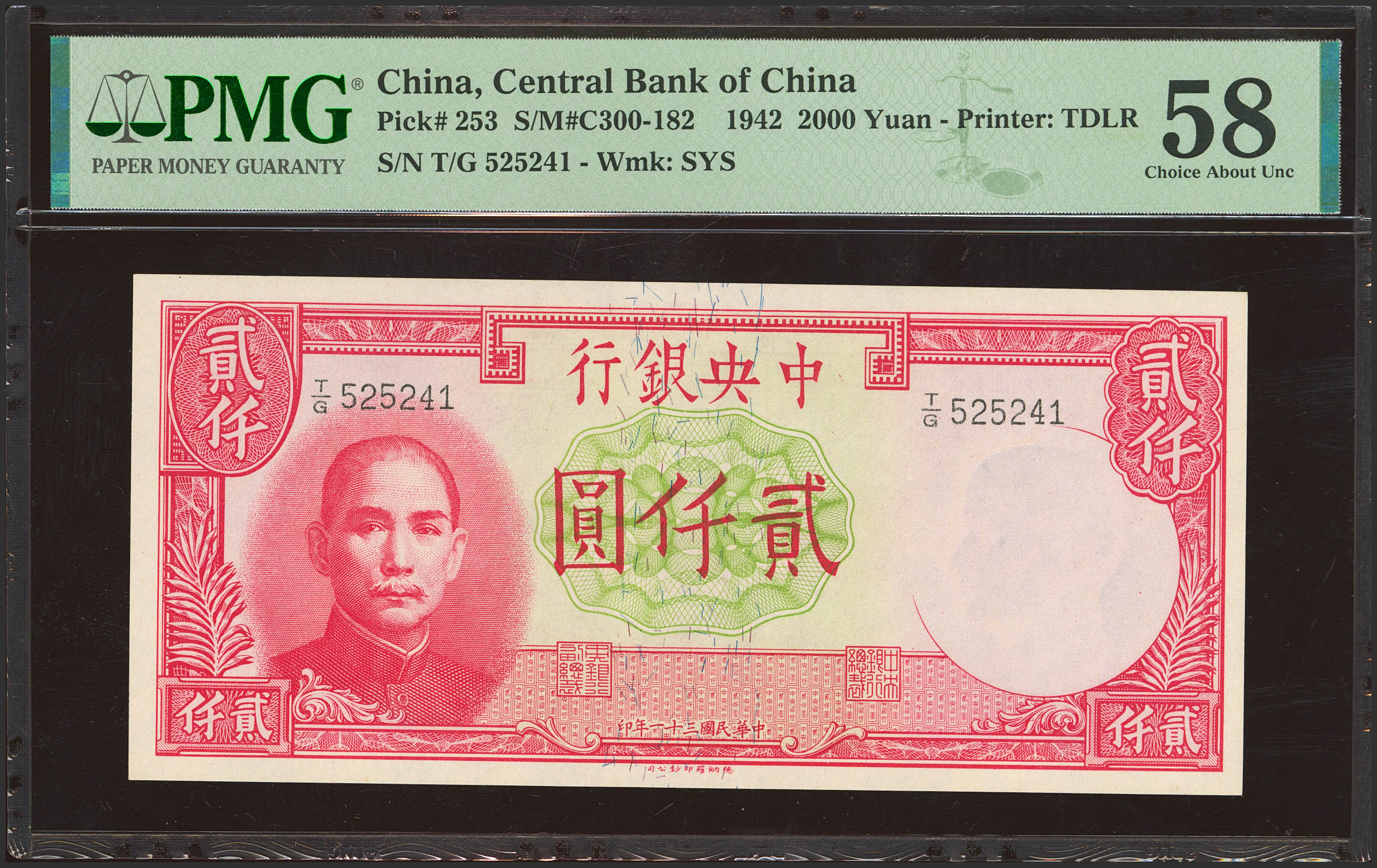 CHINA. 2000 Yuan. 1942. Central Bank of China. (Pick: 253, SM: C300-182). PMG58.