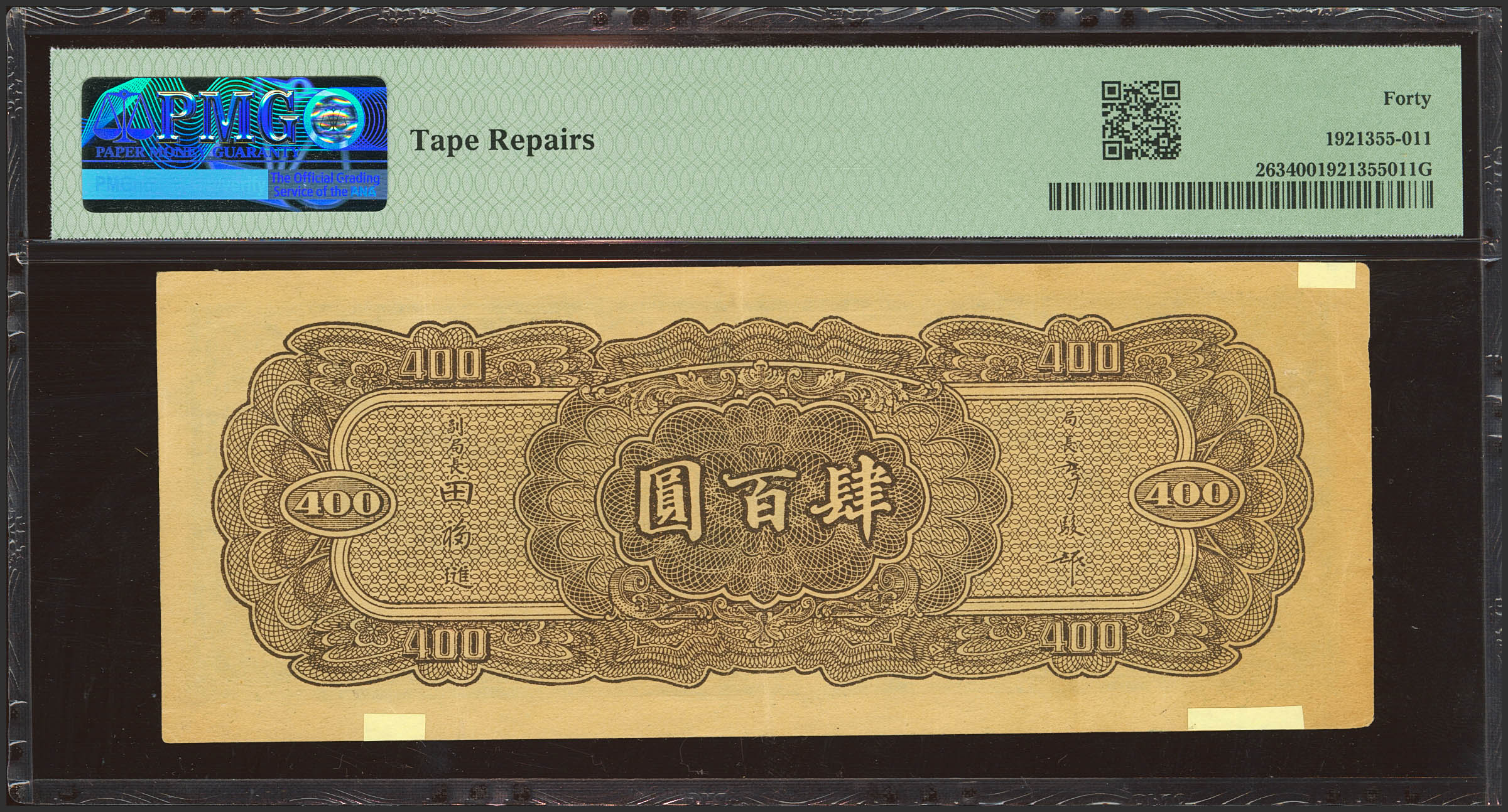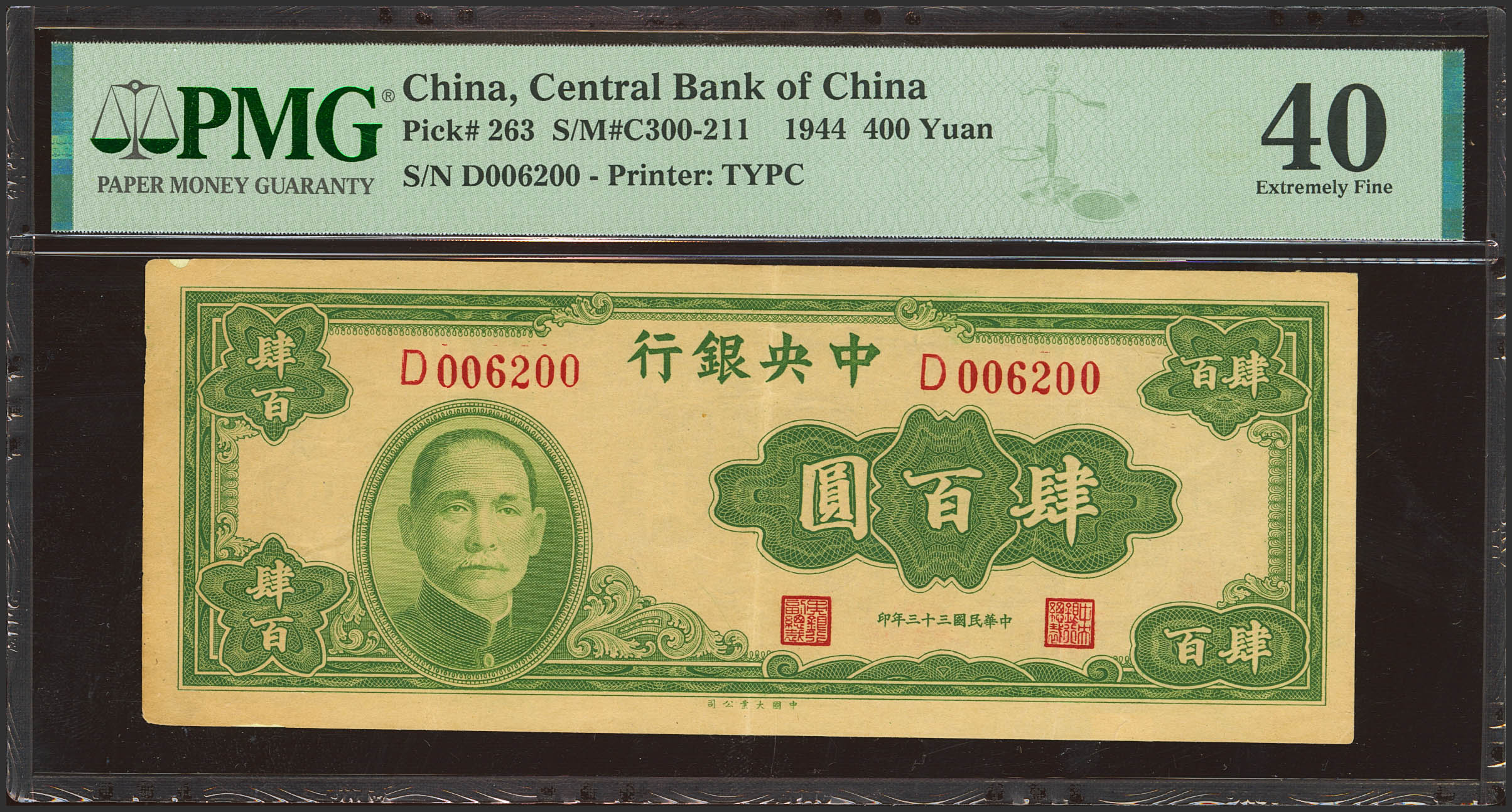 CHINA. 400 Yuan. 1944. Central Bank of China. (Pick: 263, SM: C300-211). PMG40 (tape repairs).