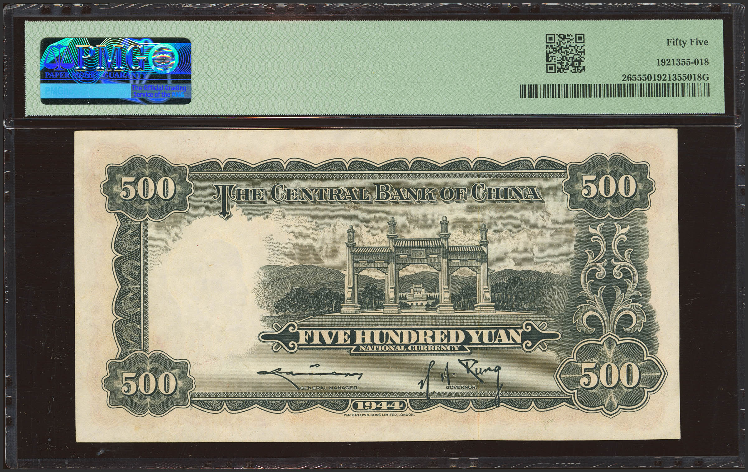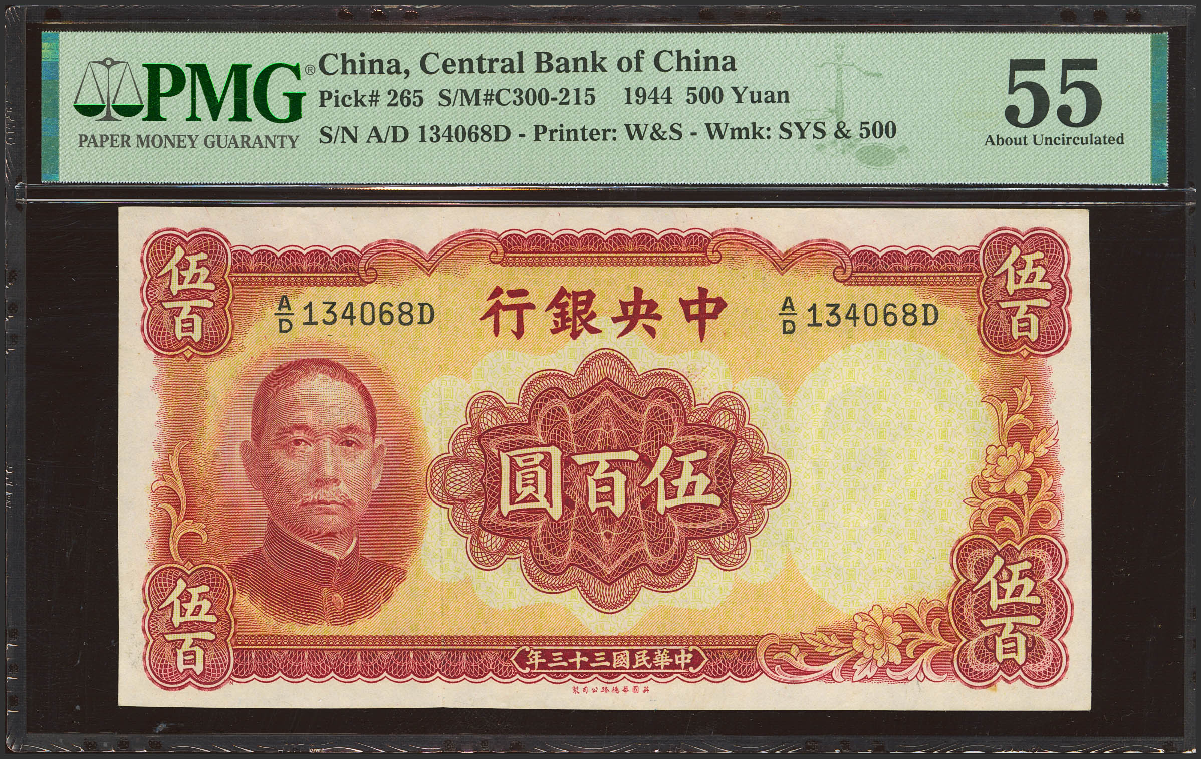 CHINA. 500 Yuan. 1944. Central Bank of China. (Pick: 265, SM: C300-215). PMG55.