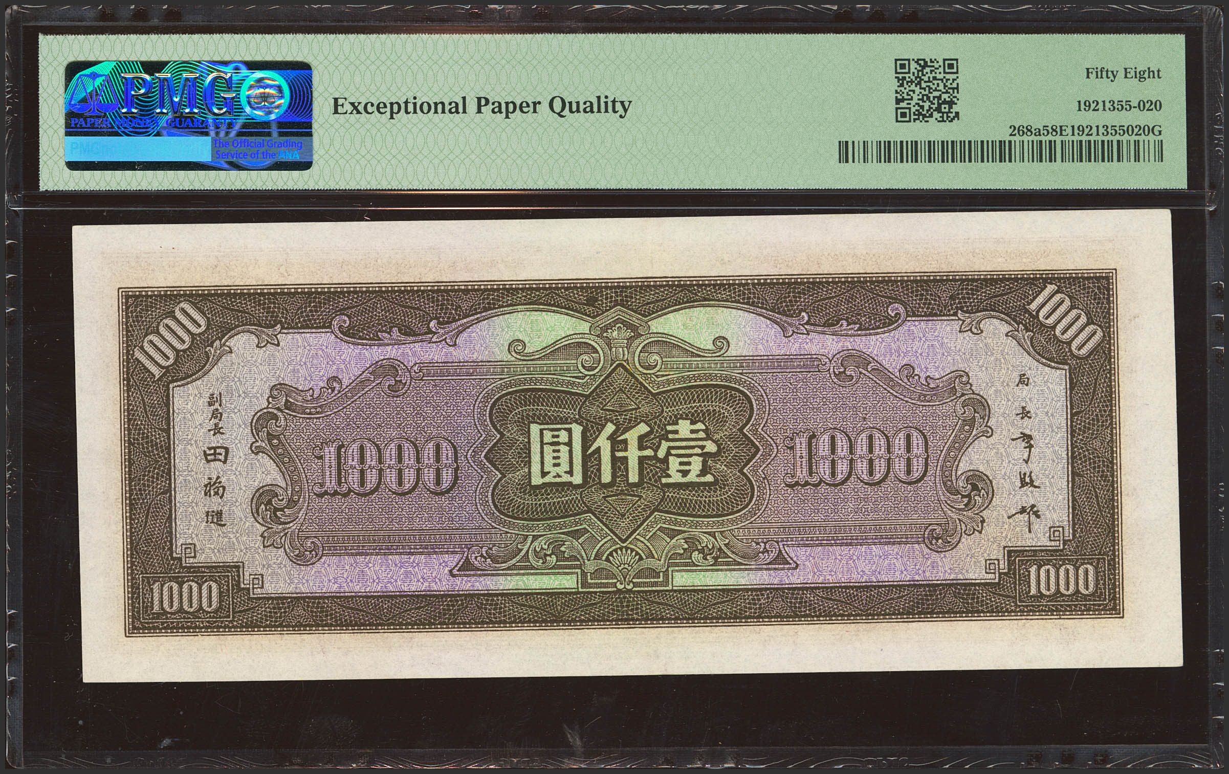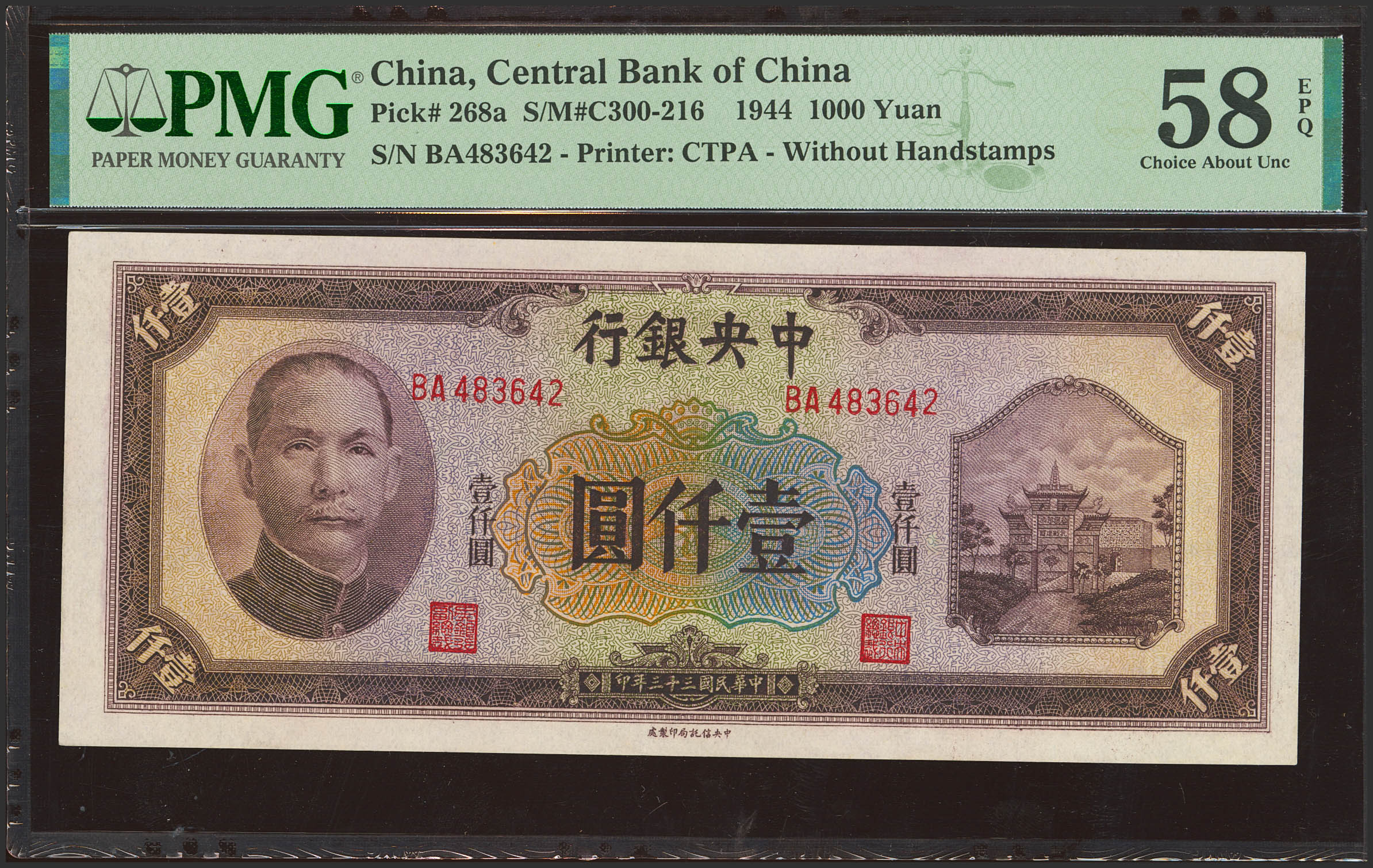 CHINA. 1000 Yuan. 1944. Central Bank of China. (Pick: 268, SM: C300-216). PMG58EPQ.