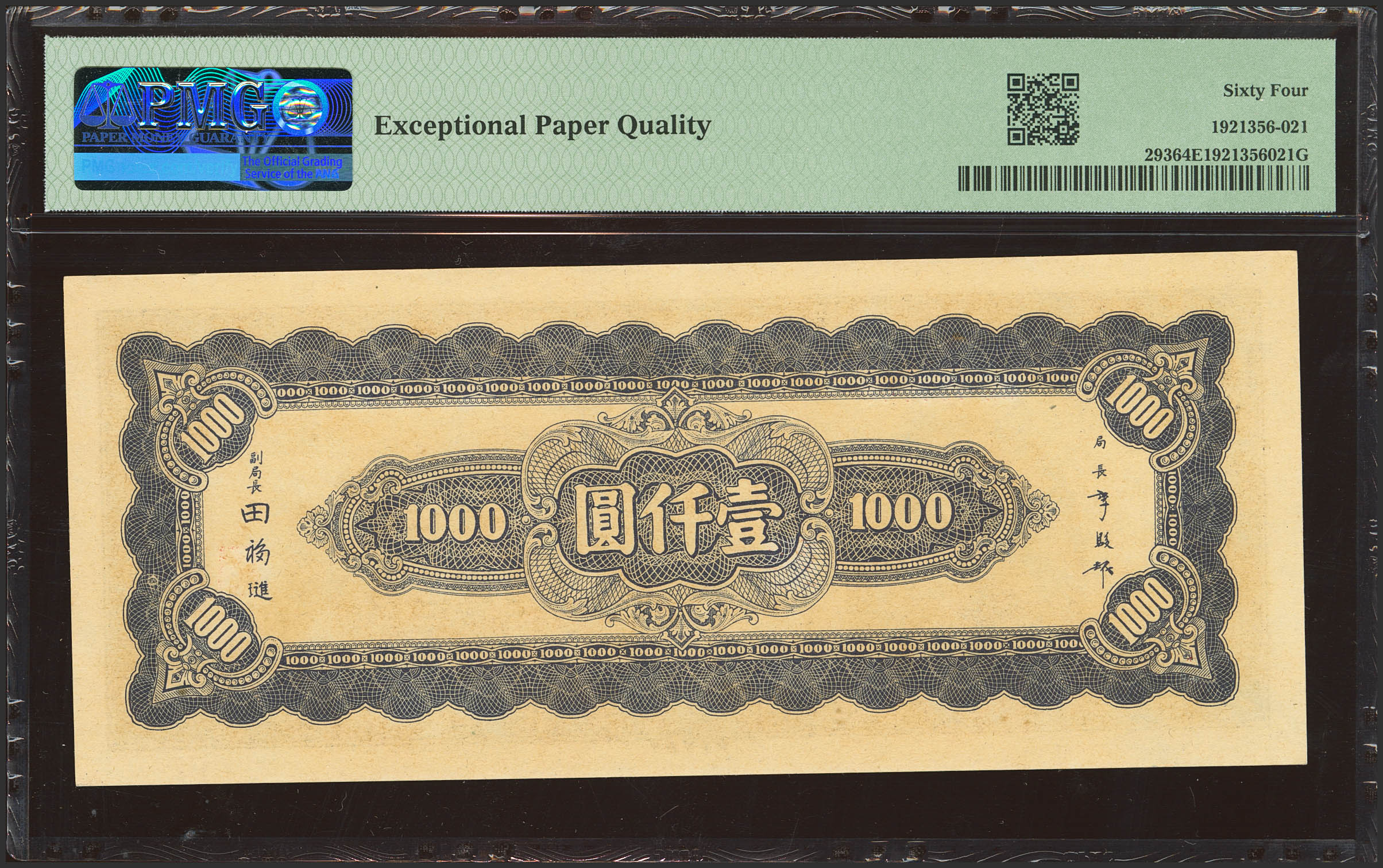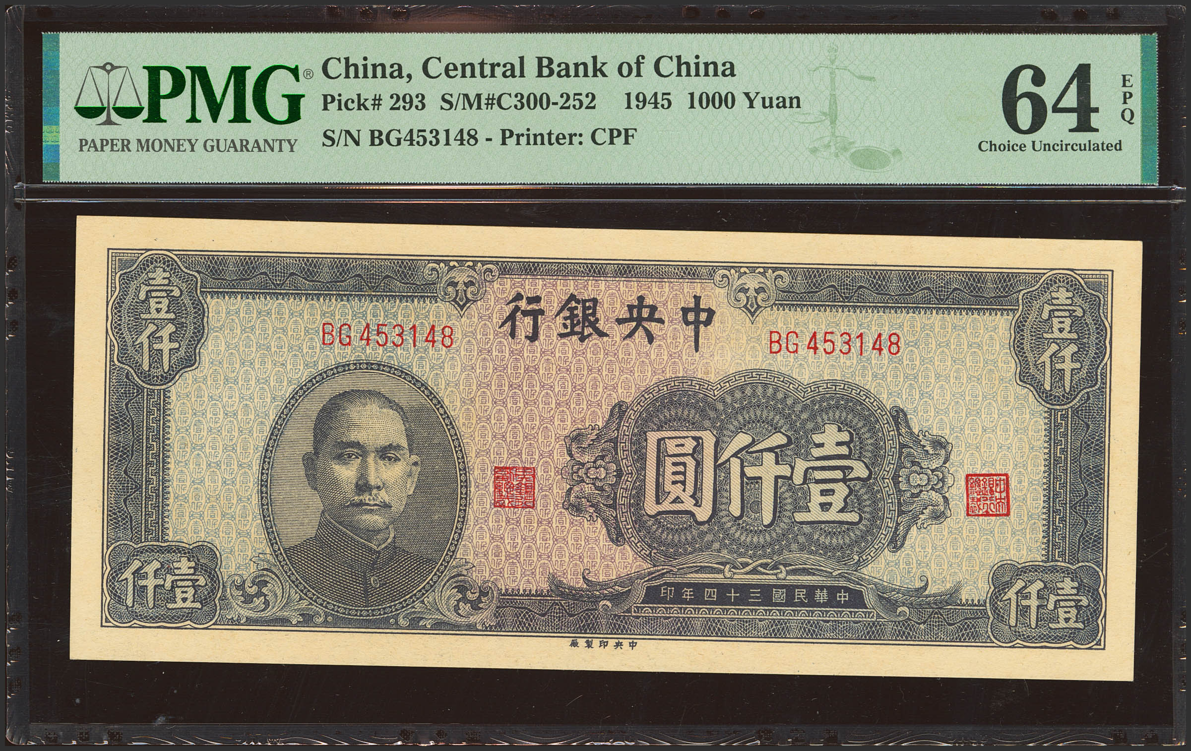 English CHINA. 1000 Yuan. 1945. Central Bank of China. (Pick: 293, SM: C300-252). PMG64EPQ.