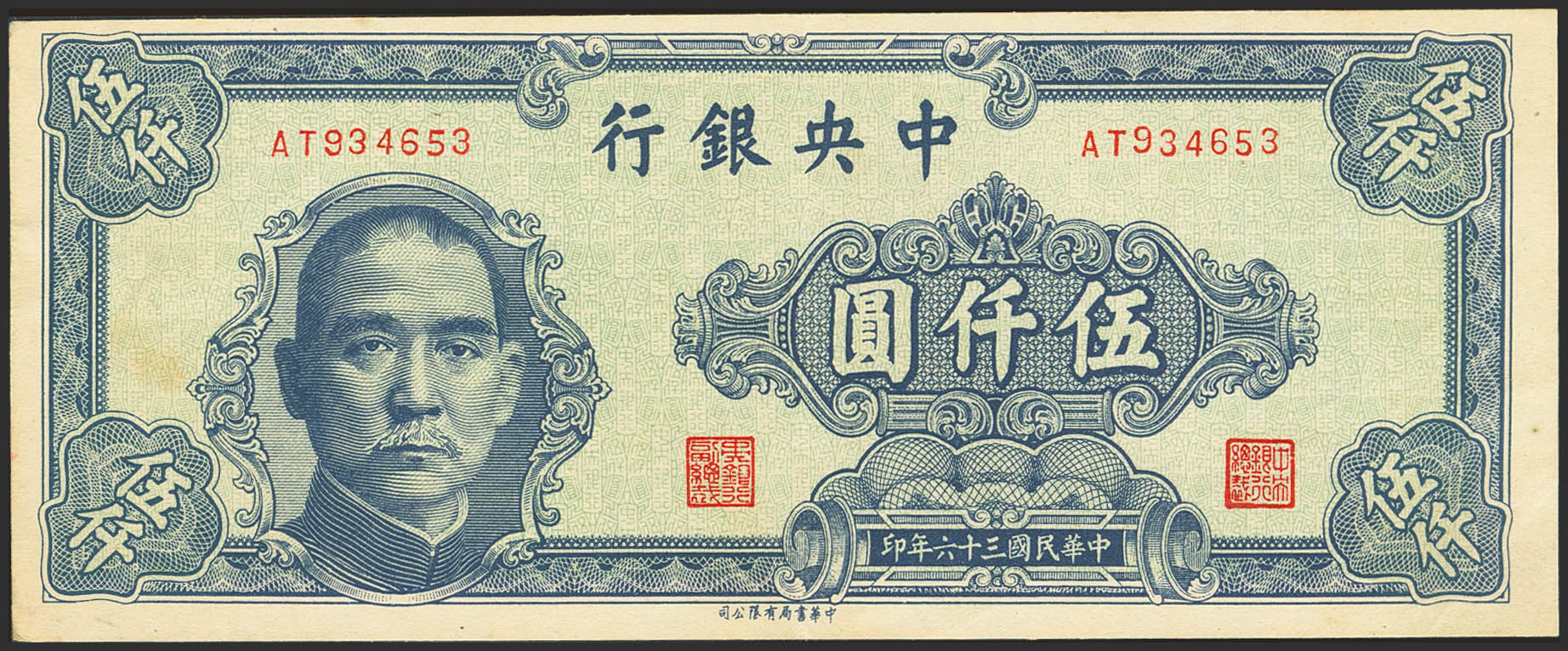 CHINA. 5000 Yuan. 1947. Central Bank of China. (Pick: 309). More than Extremely Fine.