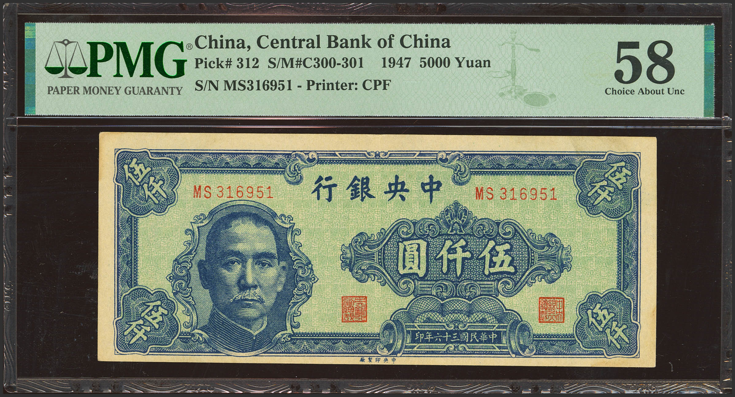 CHINA. 5000 Yuan. 1947. Central Bank of China. (Pick: 312, SM: C312). PMG58.