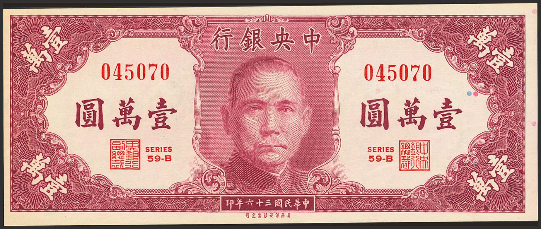 English CHINA. 10000 Yuan. 1947. Central Bank of China. (Pick: 319). Almost Uncirculated.