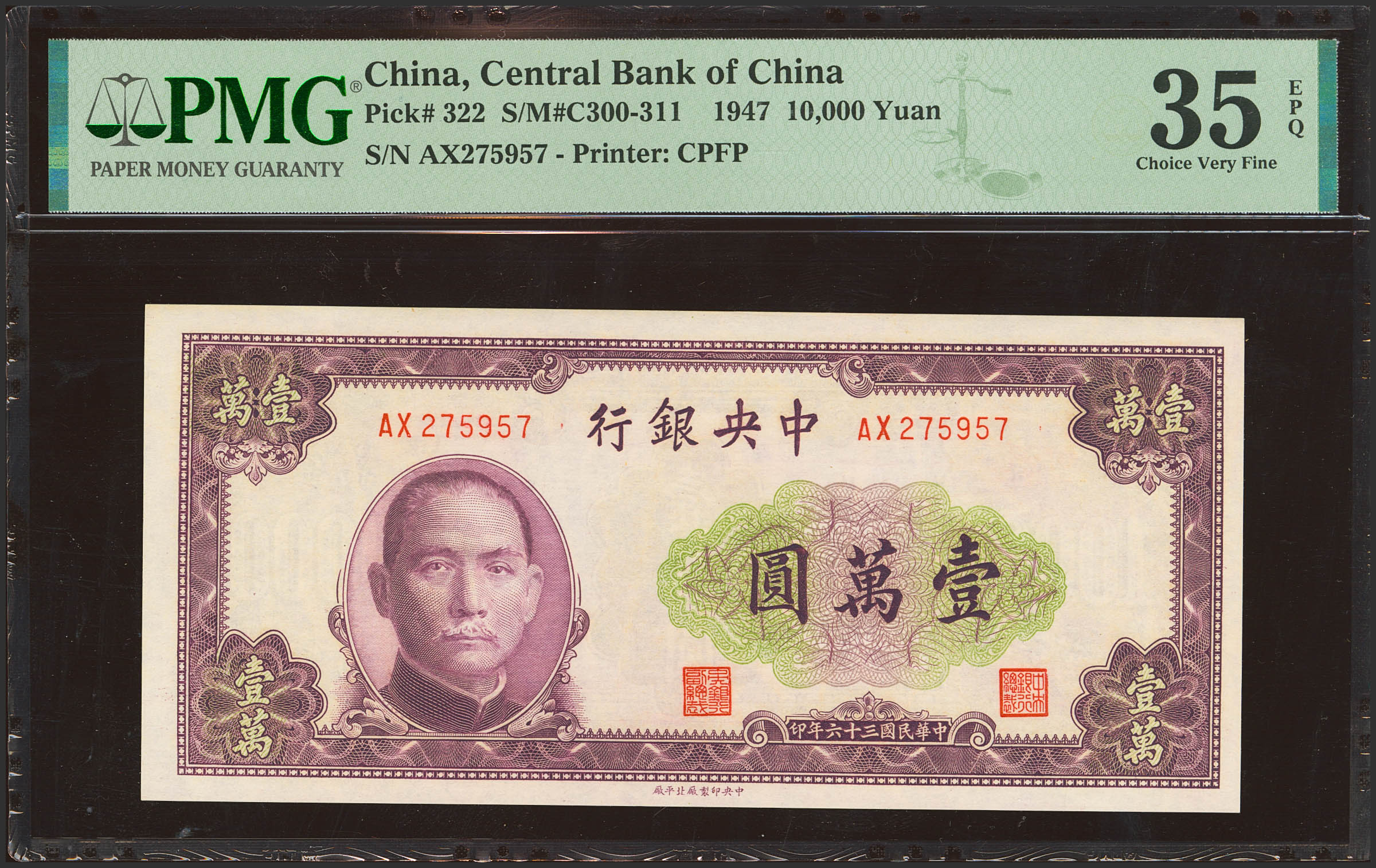 CHINA. 10000 Yuan. 1947. Central Bank of China. (Pick: 322., SM: C300-311). PMG35EPQ.