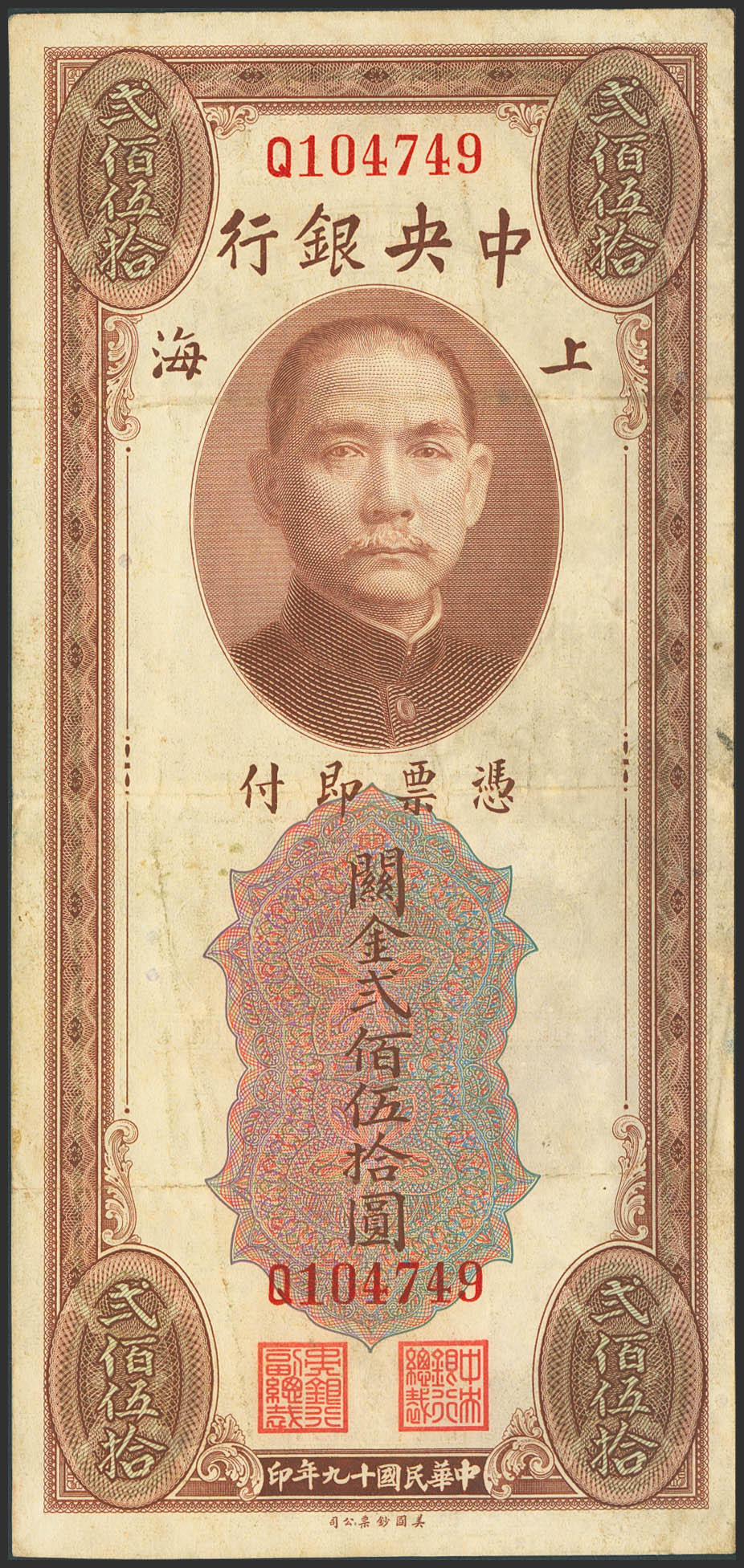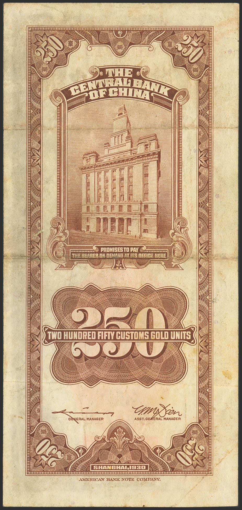 CHINA. 250 Custom gold units. 1930. Central Bank of China. (Pick: 331). More than Very Fine.