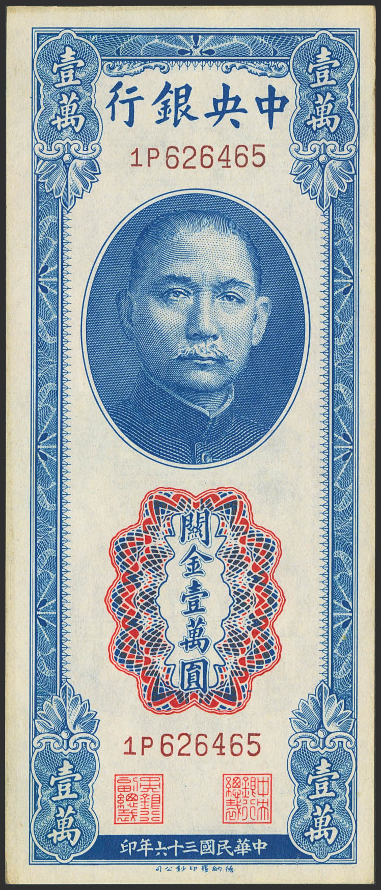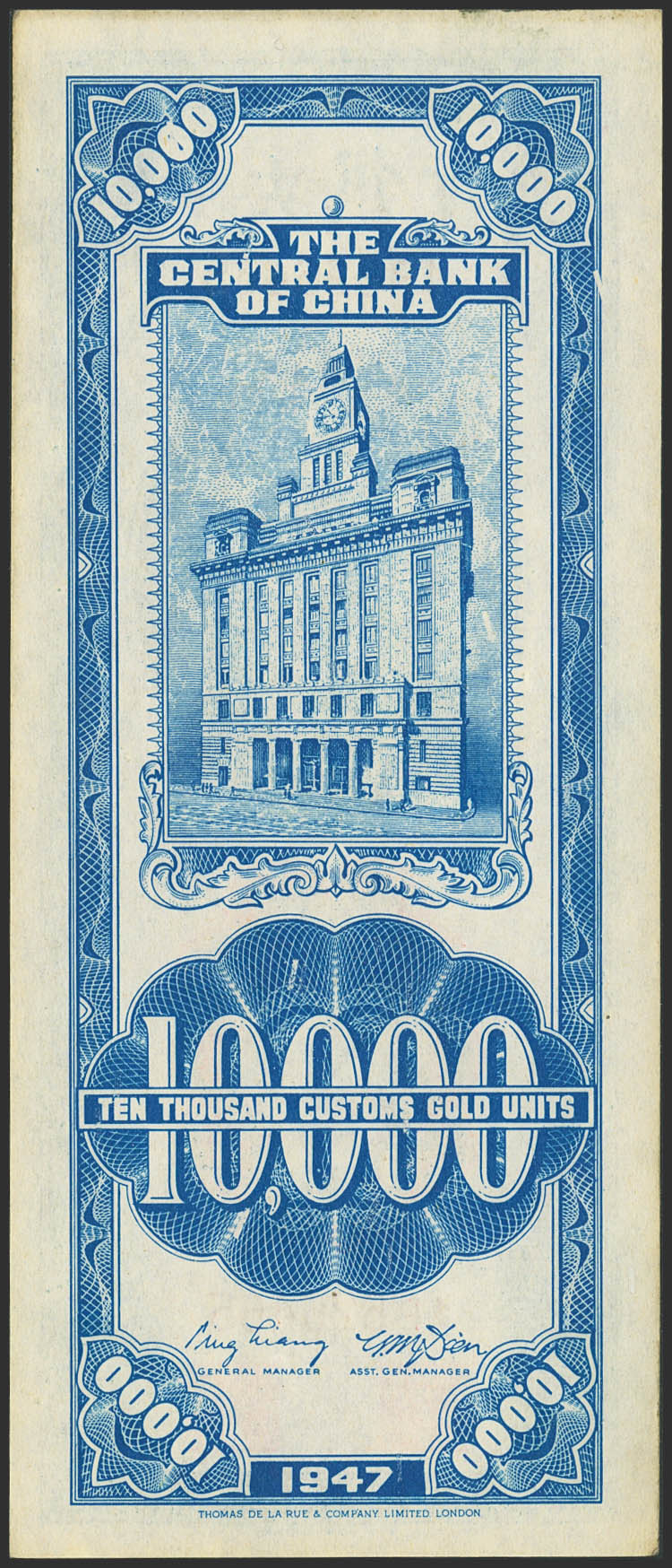 CHINA. 10000 Custom gold units. 1947. Questionable authenticity. Central Bank of China. (Pick: 354). Uncirculated.