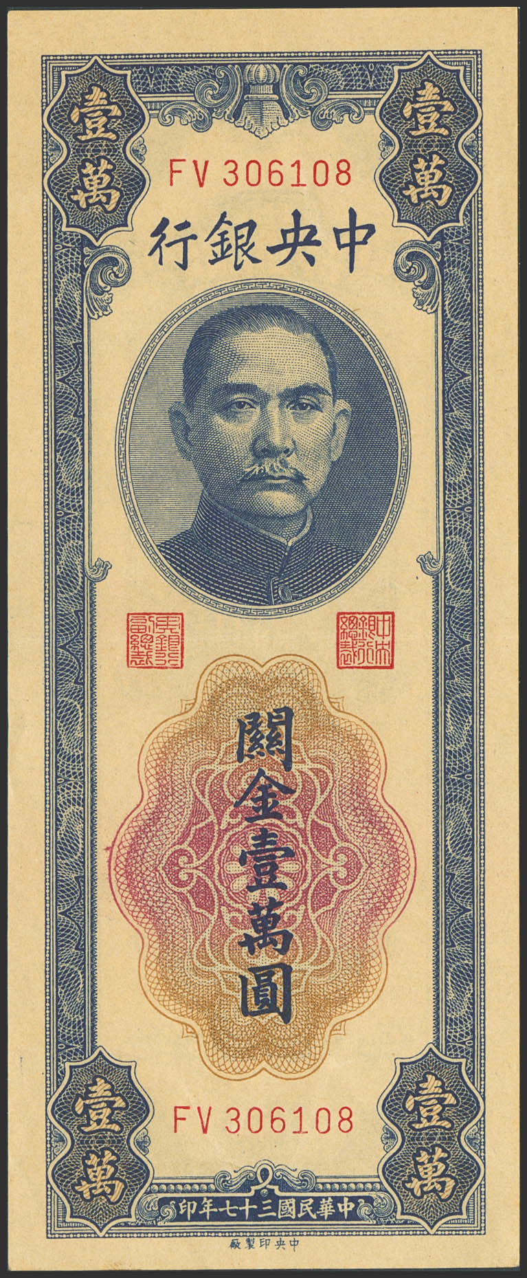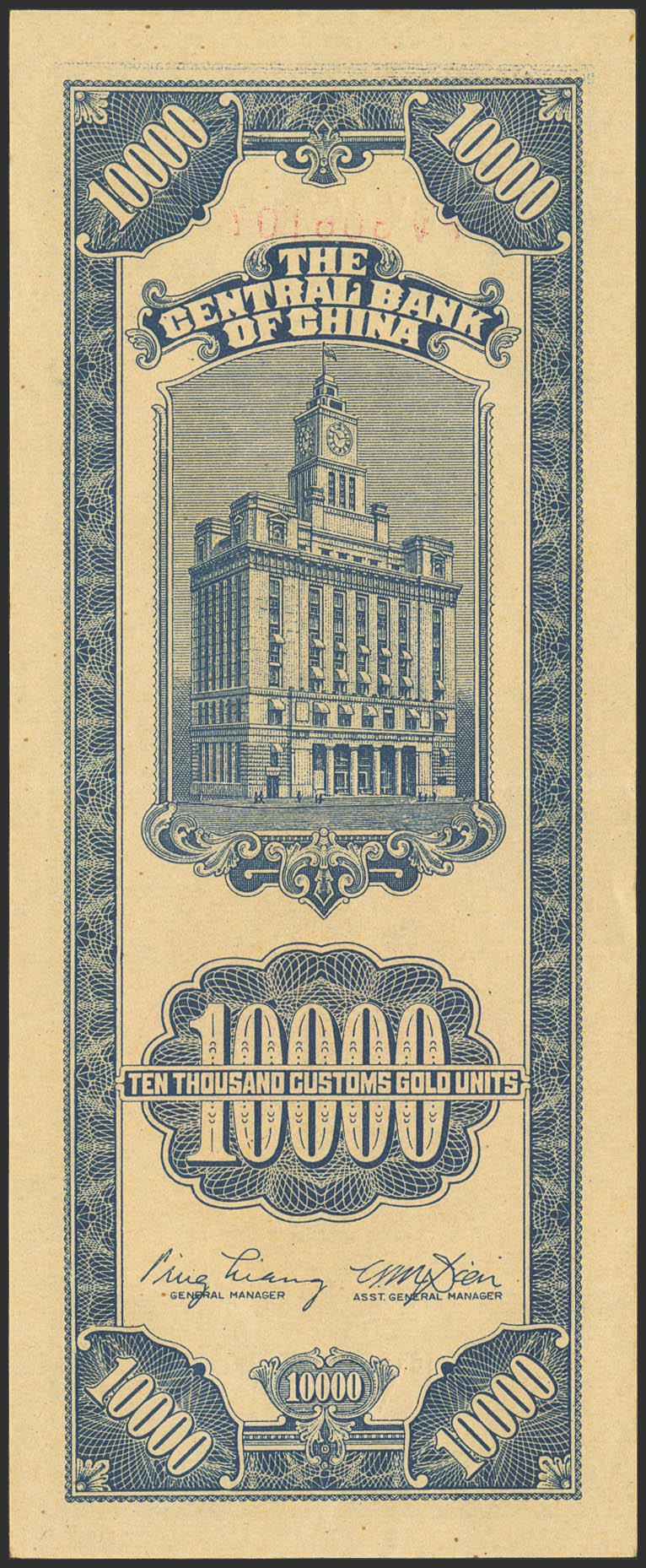 CHINA. 10000 Custom gold units. 1948. Central Bank of China. (Pick: 364). More than Extremely Fine.