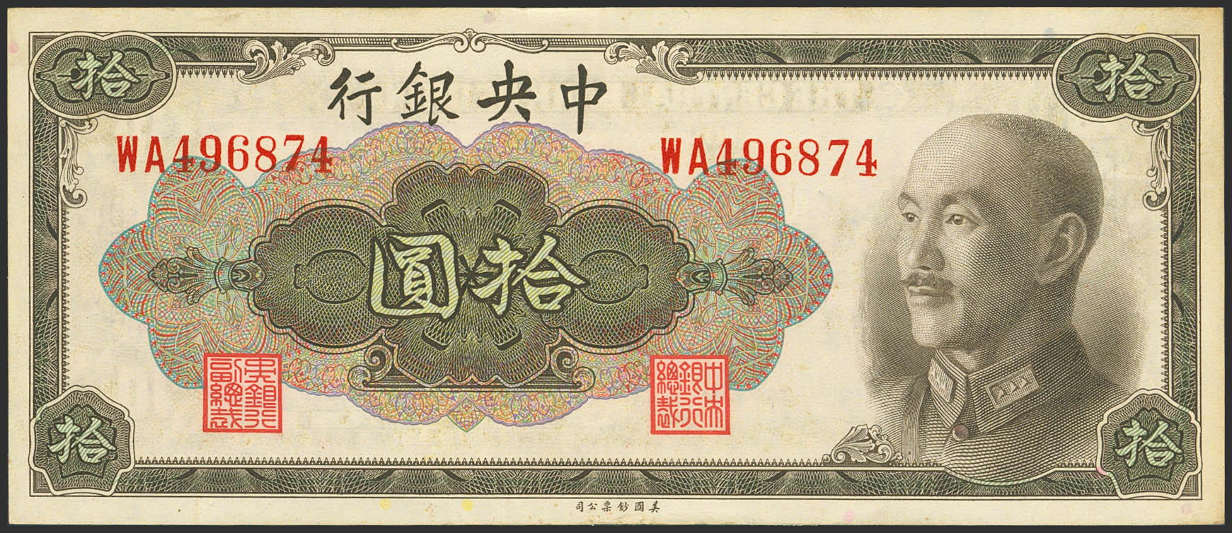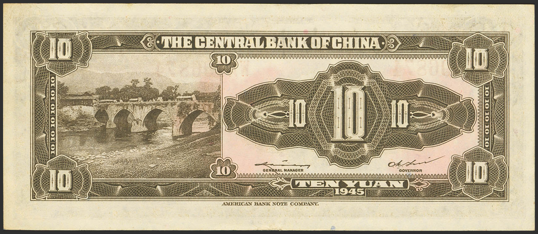 CHINA. 10 Yuan. 1945. Central Bank of China. (Pick: 390). More than Extremely Fine.