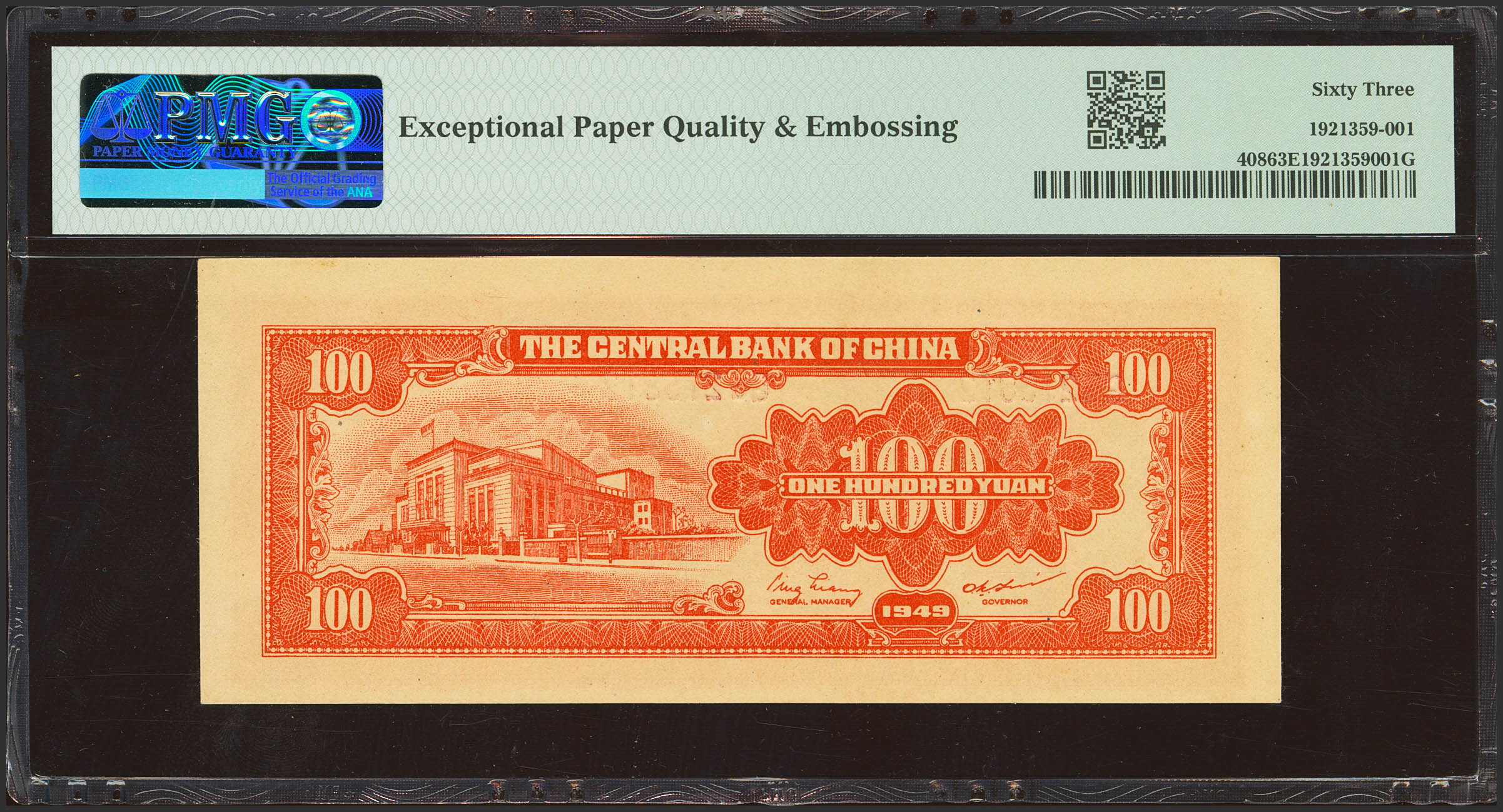CHINA. 100 Yuan. 1949. Central Bank of China. (Pick: 408, SM: C302-50). PMG63EPQ.