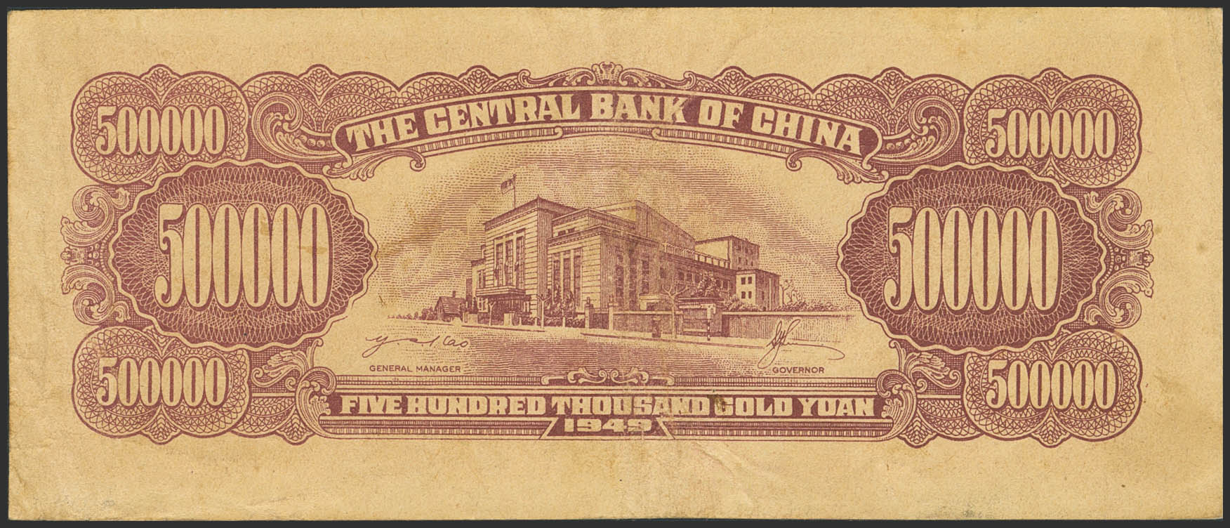 CHINA. 500000 Gold Yuan. 1949. Central Bank of China. (Pick: 424b). Very Fine.