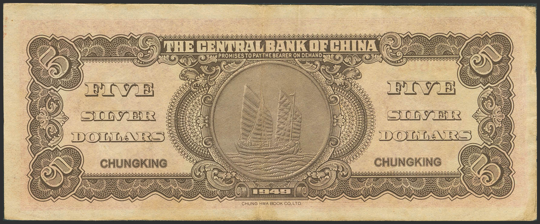 CHINA. 5 Silver Dollars. 1949. Central Bank of China. Chungking. (Pick: 443). More than Very Fine.